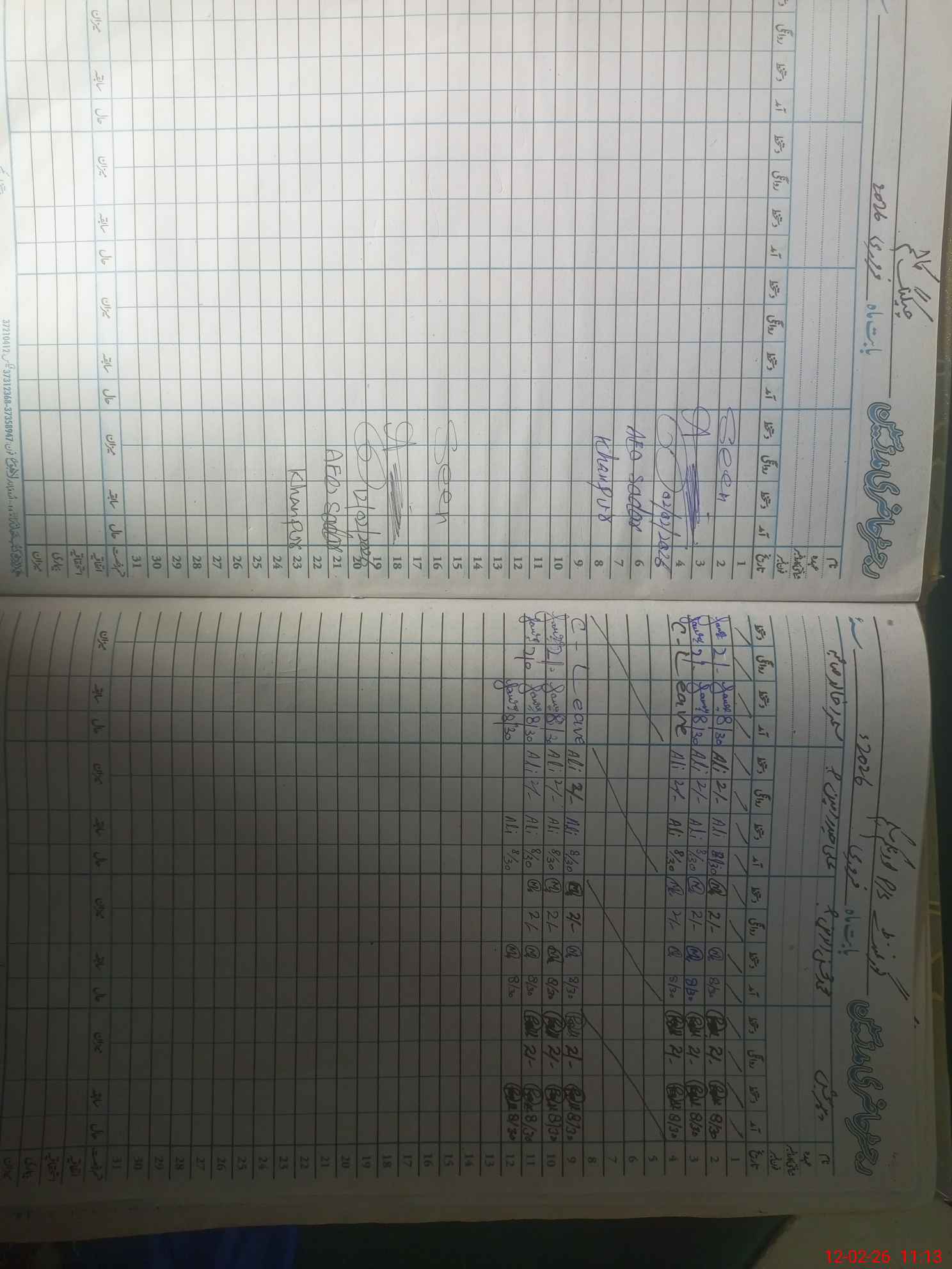 | CNIC | Full Name | Designation | R/C | Absence During Last Calender Month |