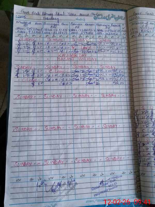 | CNIC | Full Name | Designation | R/C | Absence During Last Calender Month |