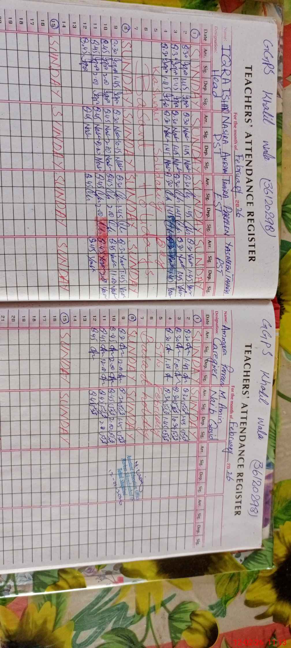 | Attendance Register | Head Teacher | MEA with School | Visit Proof |