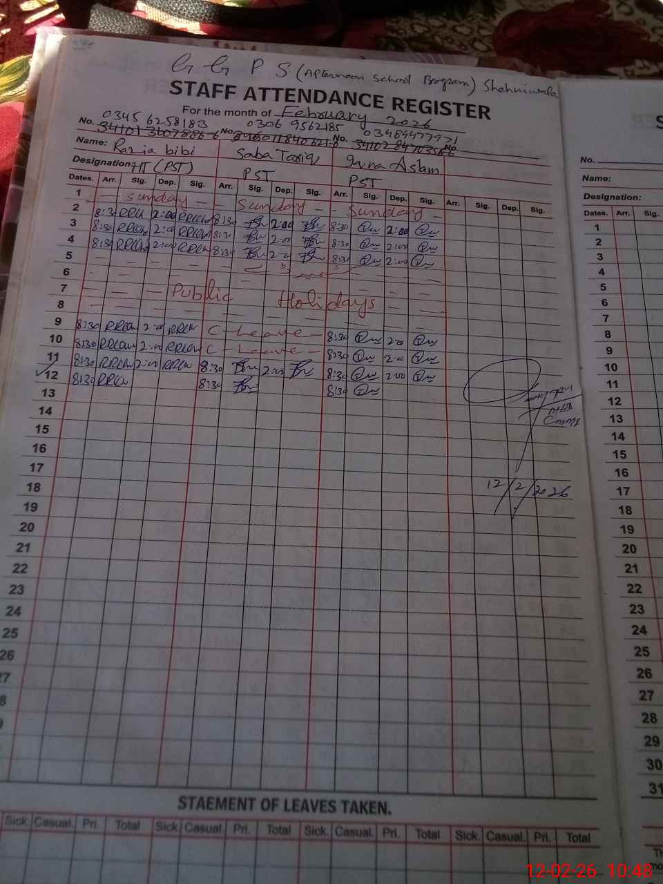 | Name: RA**** BI**** Designation: (School Headmaster's/Headmistress's) PST/PTC/JV Phone/Cell Number: 03**** |