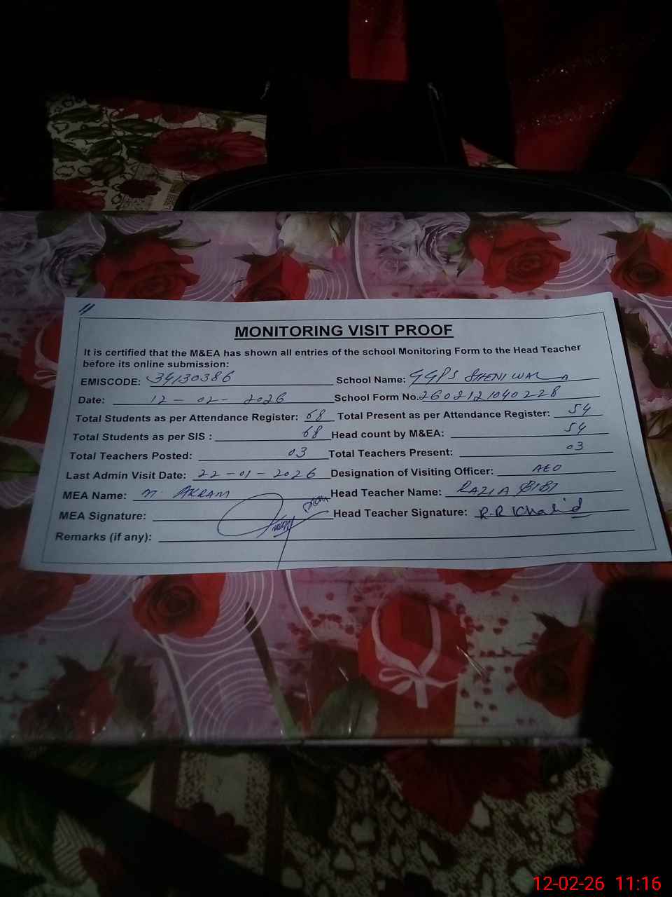 | EMIS Code: 34130386 | Name of School: GGPS SHENI WALA | |||