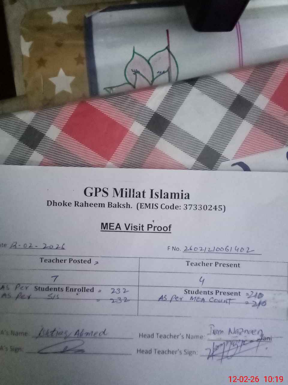 | EMIS Code: 37330245 | Name of School: GPS MILLAT ISLAMIA DHOK RAHEEM BAKHSH RAWALPINDI | |||