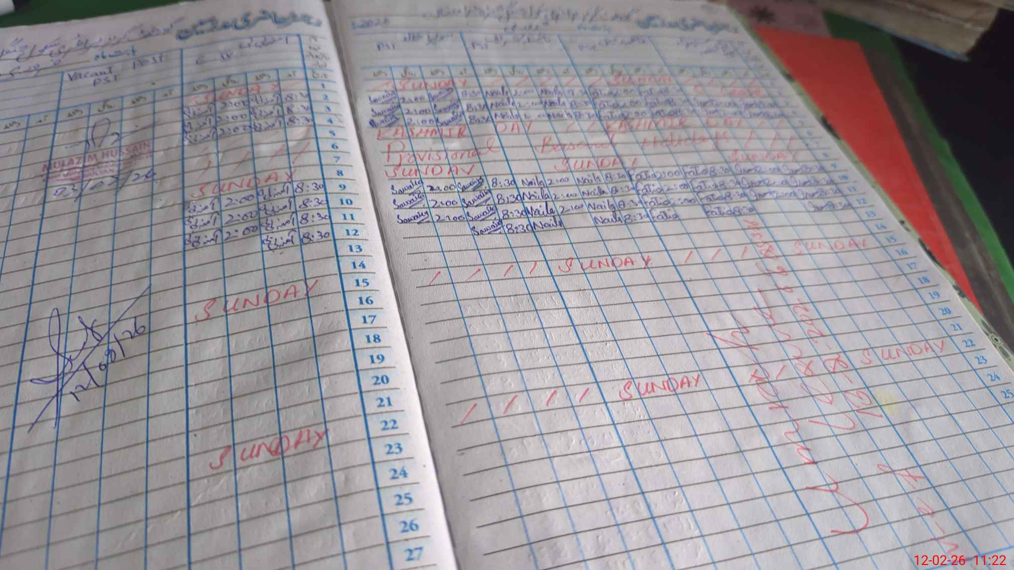 | CNIC | Full Name | Designation | R/C | Absence During Last Calender Month |