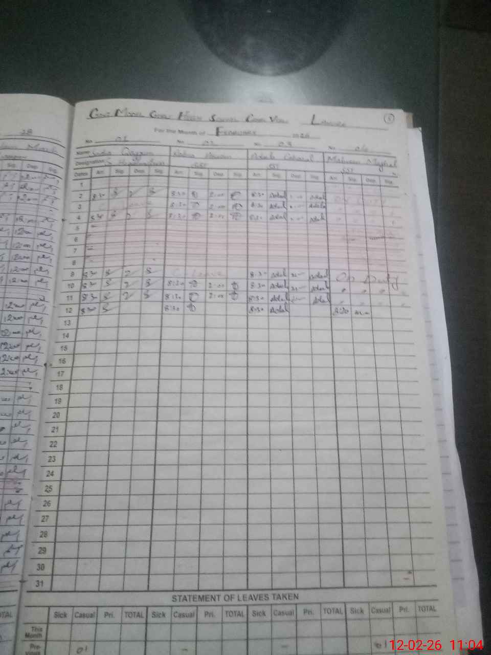 | 35**** | Sa**** Ka**** | PST Arts | Regular | 0 | 0 | 31 | 0 | 0 | 0 | 0 | 0 | 0 | Absent (Un-Authorized) |