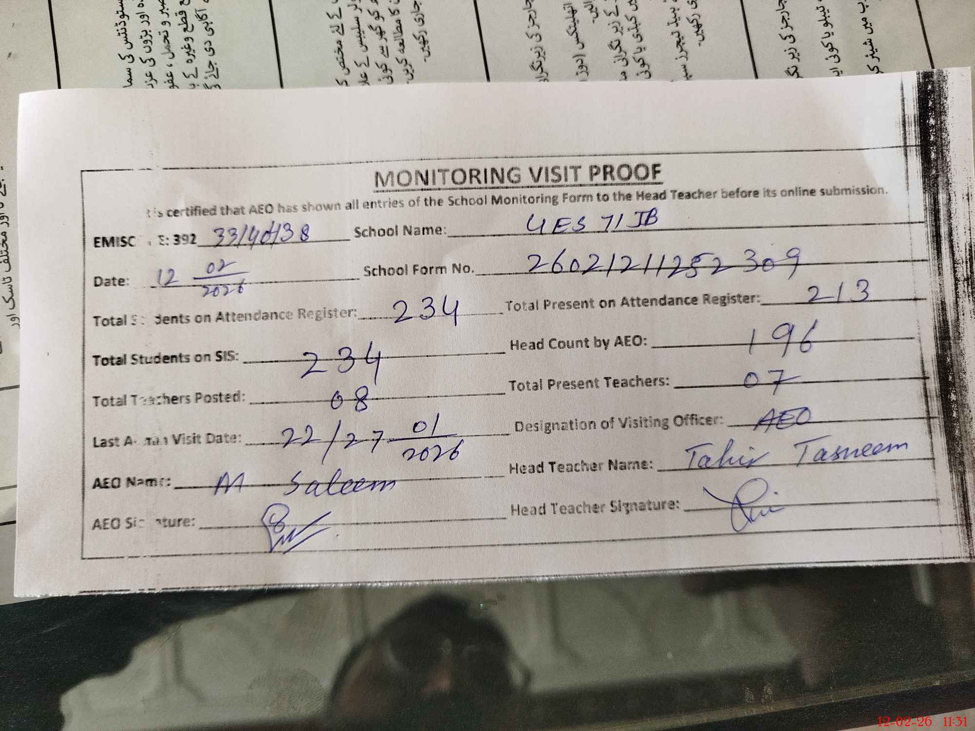 | EMIS Code: 33140438 | Name of School: GES CHAK 71 JB I | |||