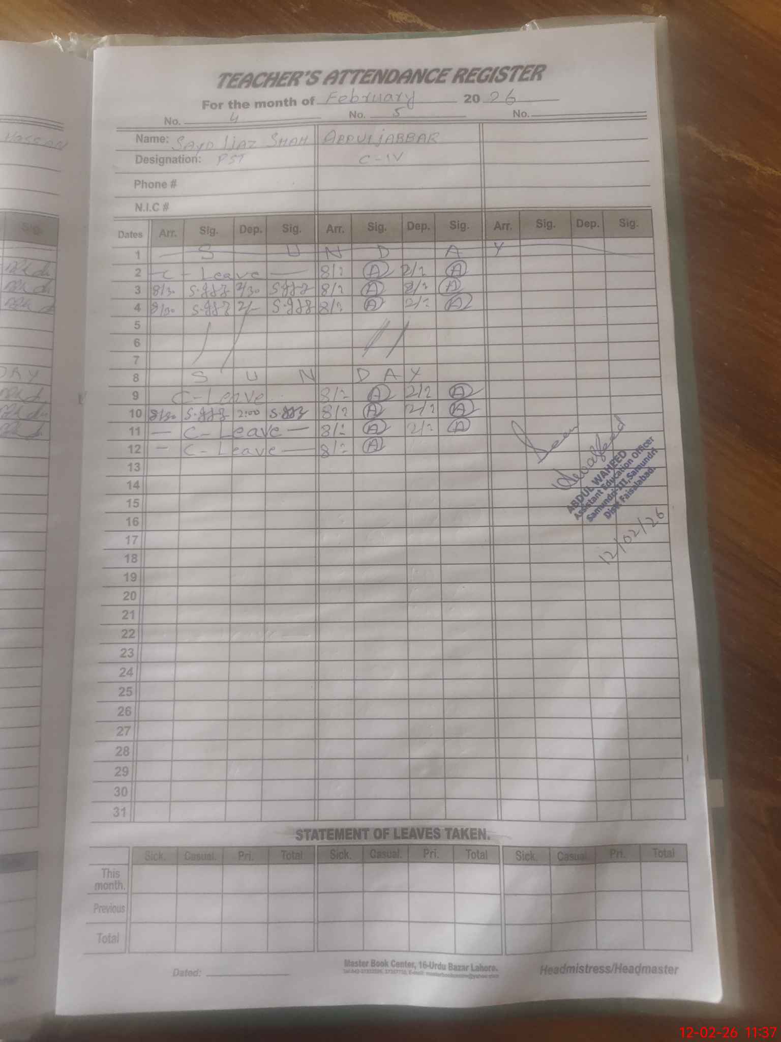 | Name: HA**** MA**** HU**** Designation: (School Headmaster's/Headmistress's) PST Phone/Cell Number: 03**** |