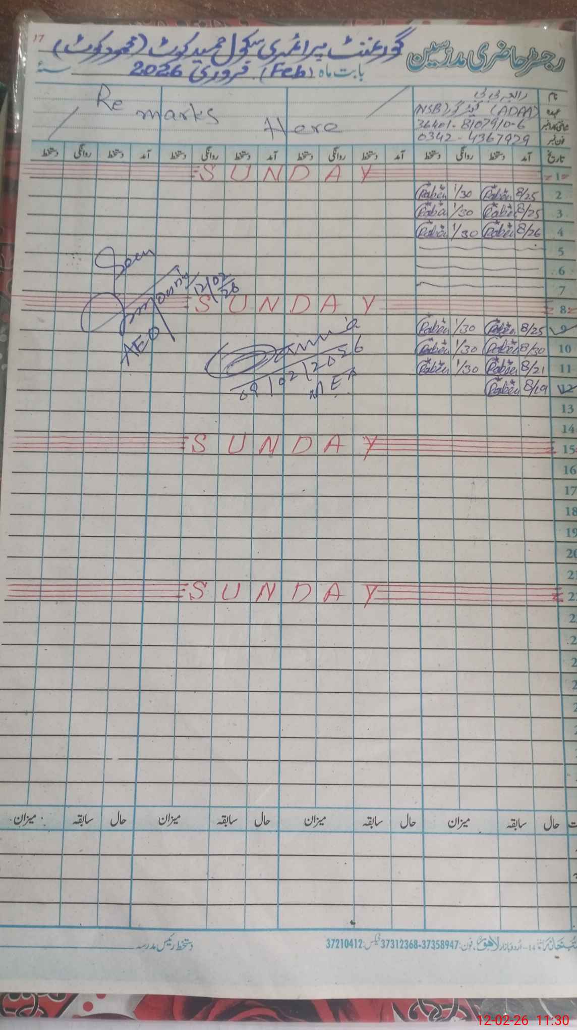 | Name: TA**** SA**** TA**** Designation: (School Headmaster's/Headmistress's) PST Phone/Cell Number: 03**** |