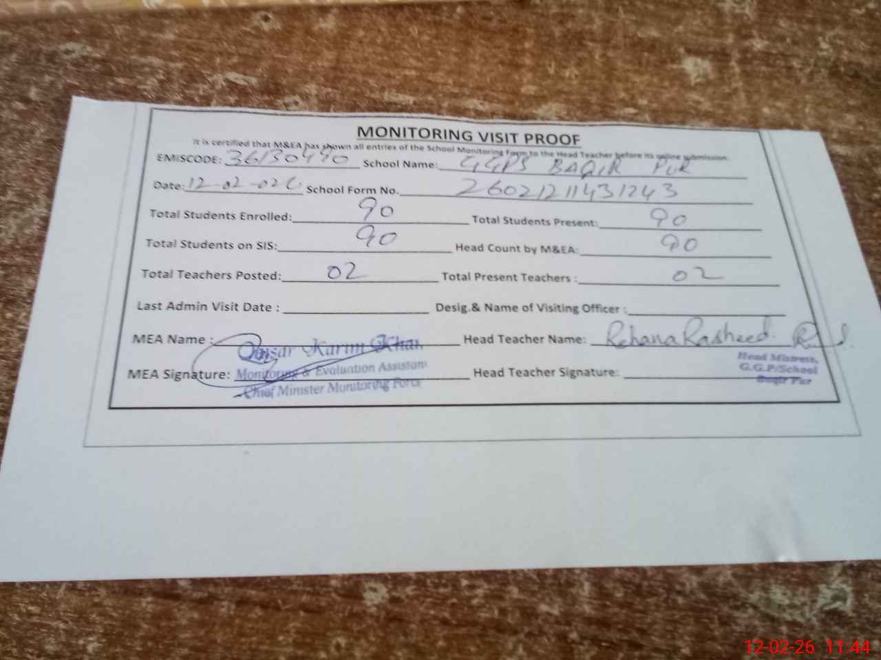 | EMIS Code: 36130490 | Name of School: GGPS BAQIR PUR | |||