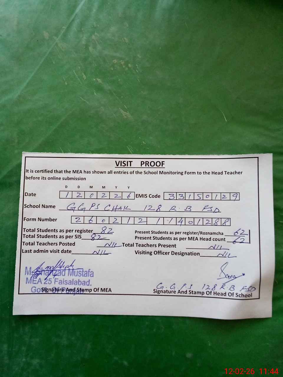 | EMIS Code: 33150129 | Name of School: GGPS CHAK 128 RB | |||