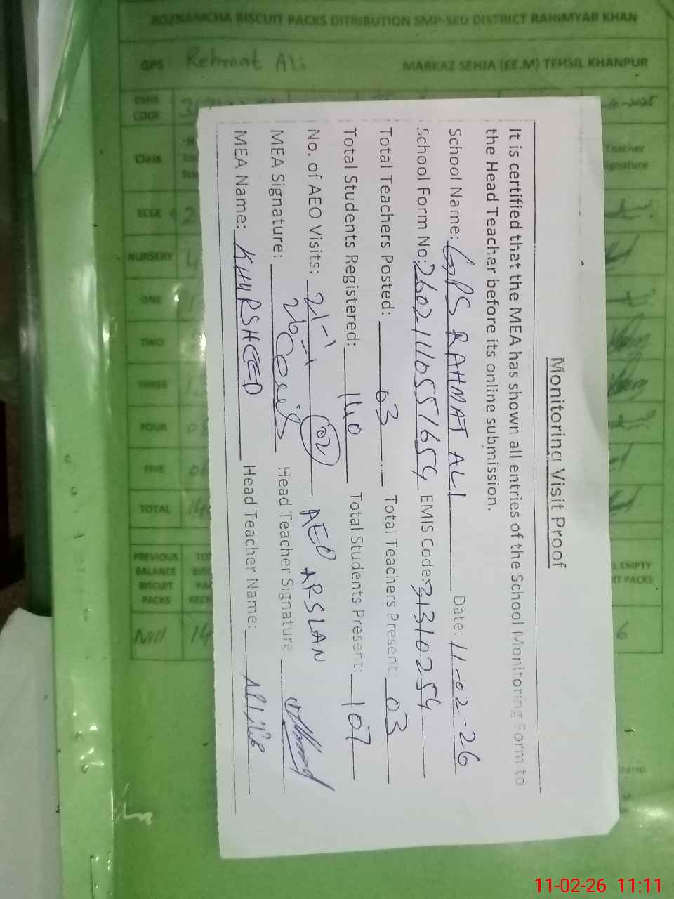| EMIS Code: 31310254 | Name of School: GPS RAHMAT ALI | |||