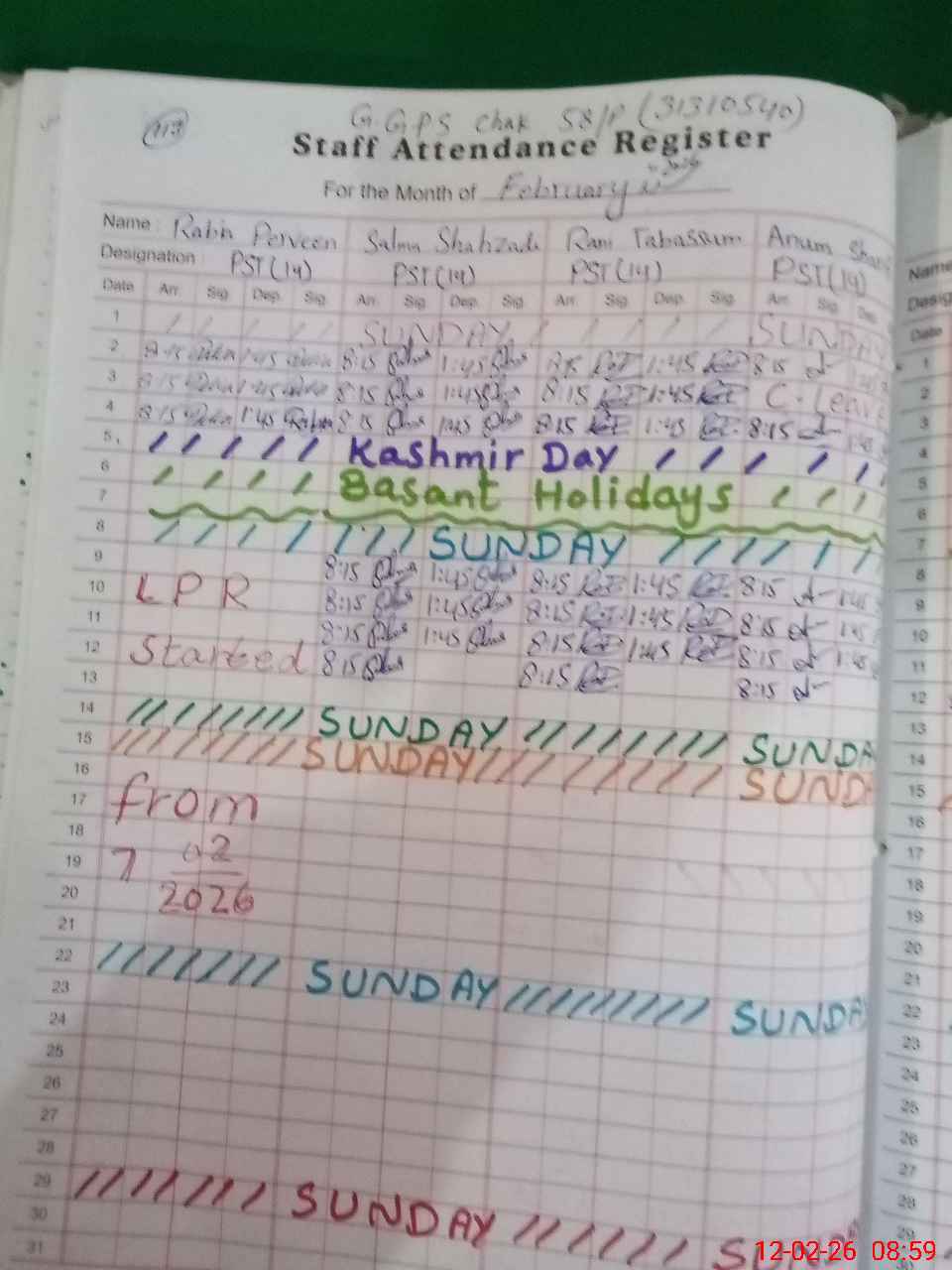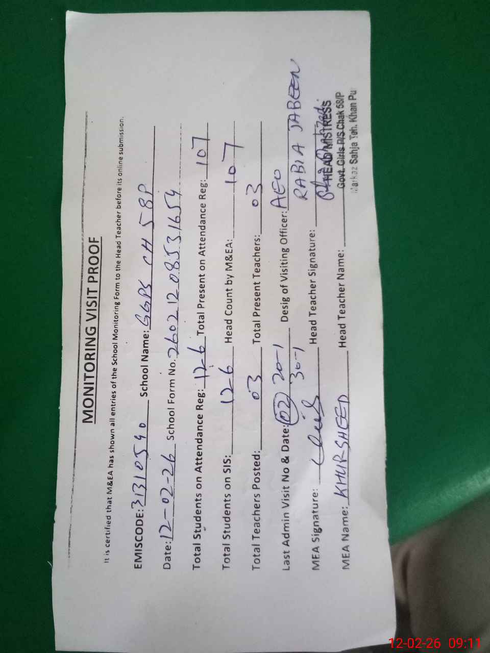 | EMIS Code: 31310540 | Name of School: GGPS CHAK NO 58/P (After Noon) | |||
