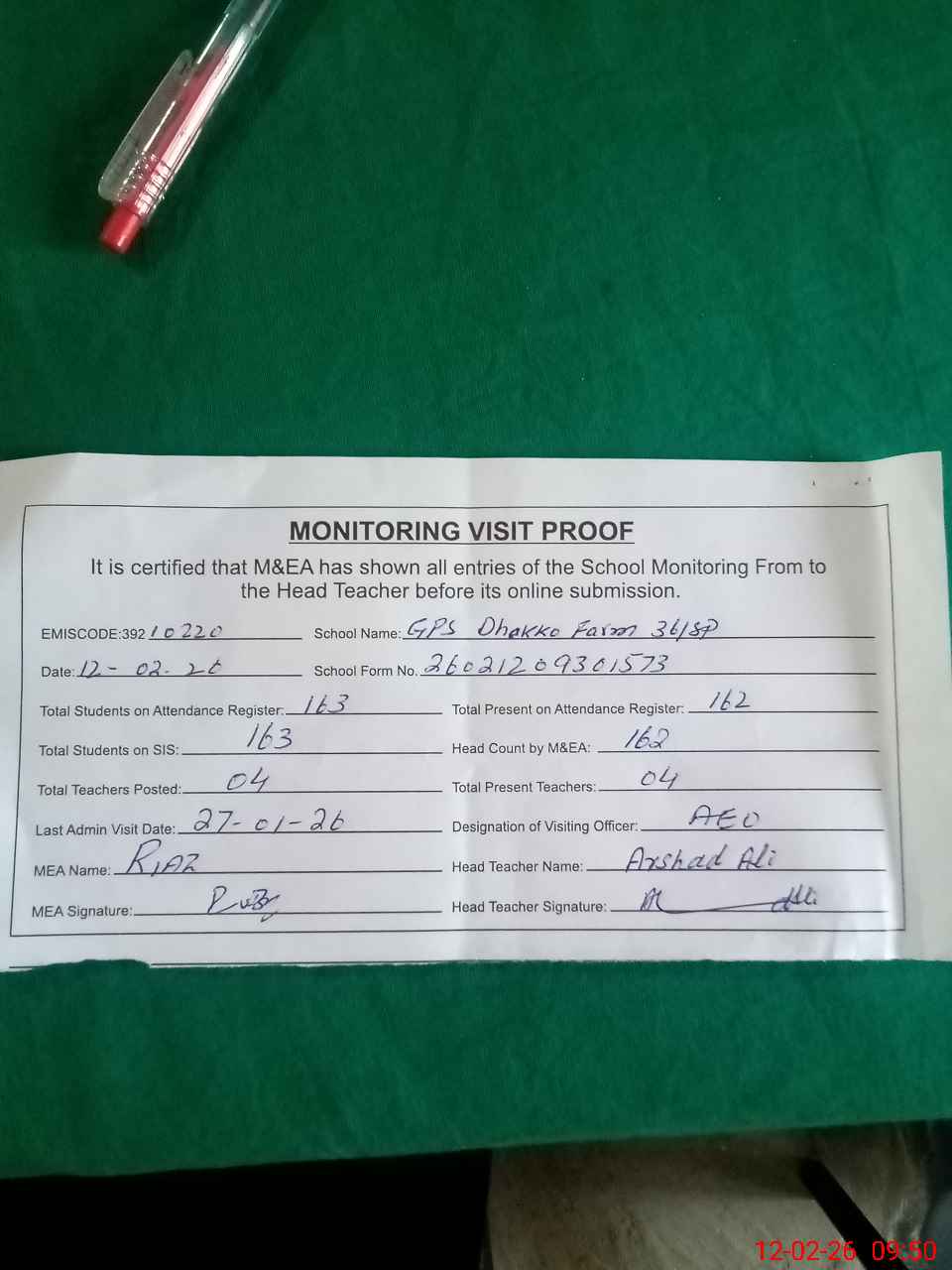 | EMIS Code: 39210220 | Name of School: GPS DHAKKO FARM CHAK NO. 36/SP SALAMAT PURA | |||