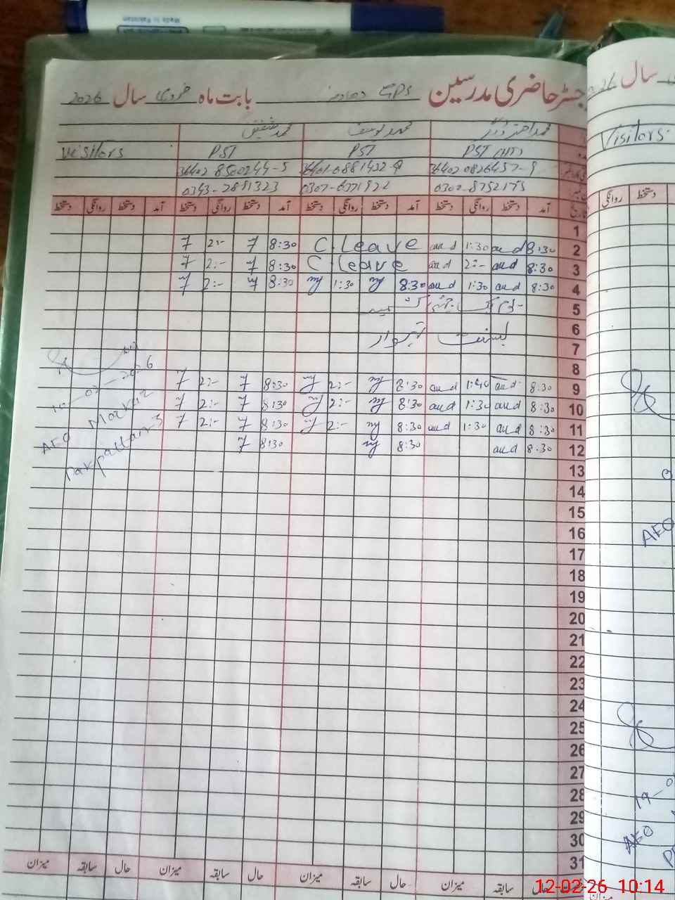 | CNIC | Full Name | Designation | R/C | Absence During Last Calender Month |