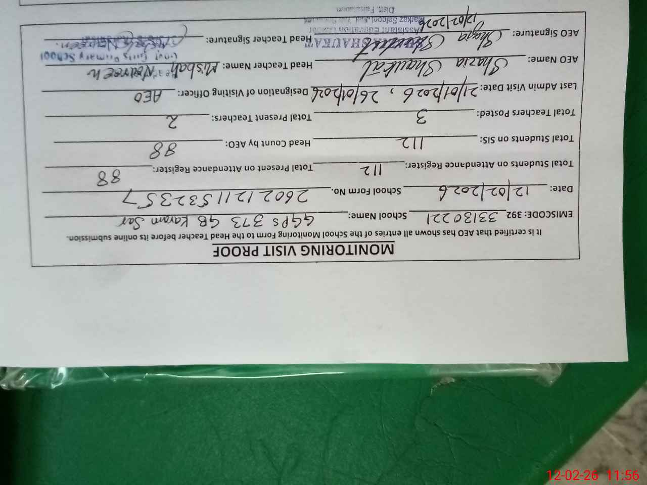 | EMIS Code: 33130221 | Name of School: GGPS CHAK 373 GB KARAM SAR SAMUNDRI | |||