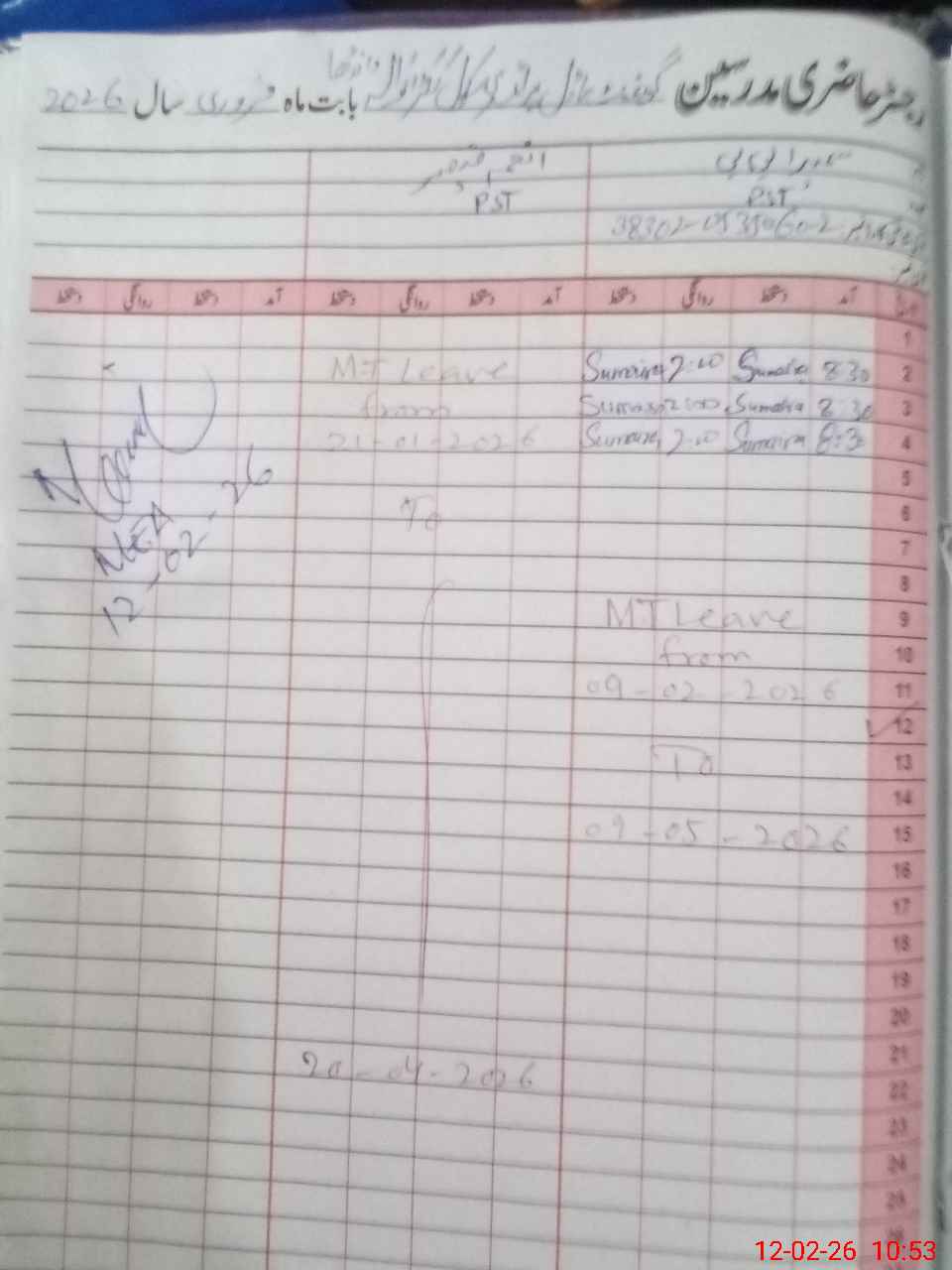 | CNIC | Full Name | Designation | R/C | Absence During Last Calender Month |