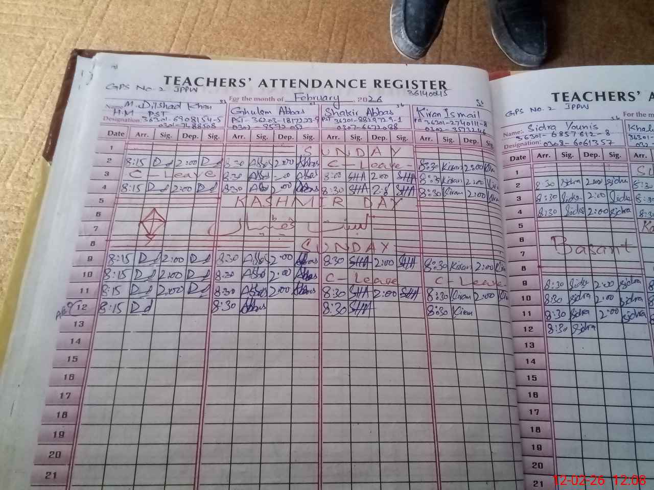 | CNIC | Full Name | Designation | R/C | Absence During Last Calender Month |