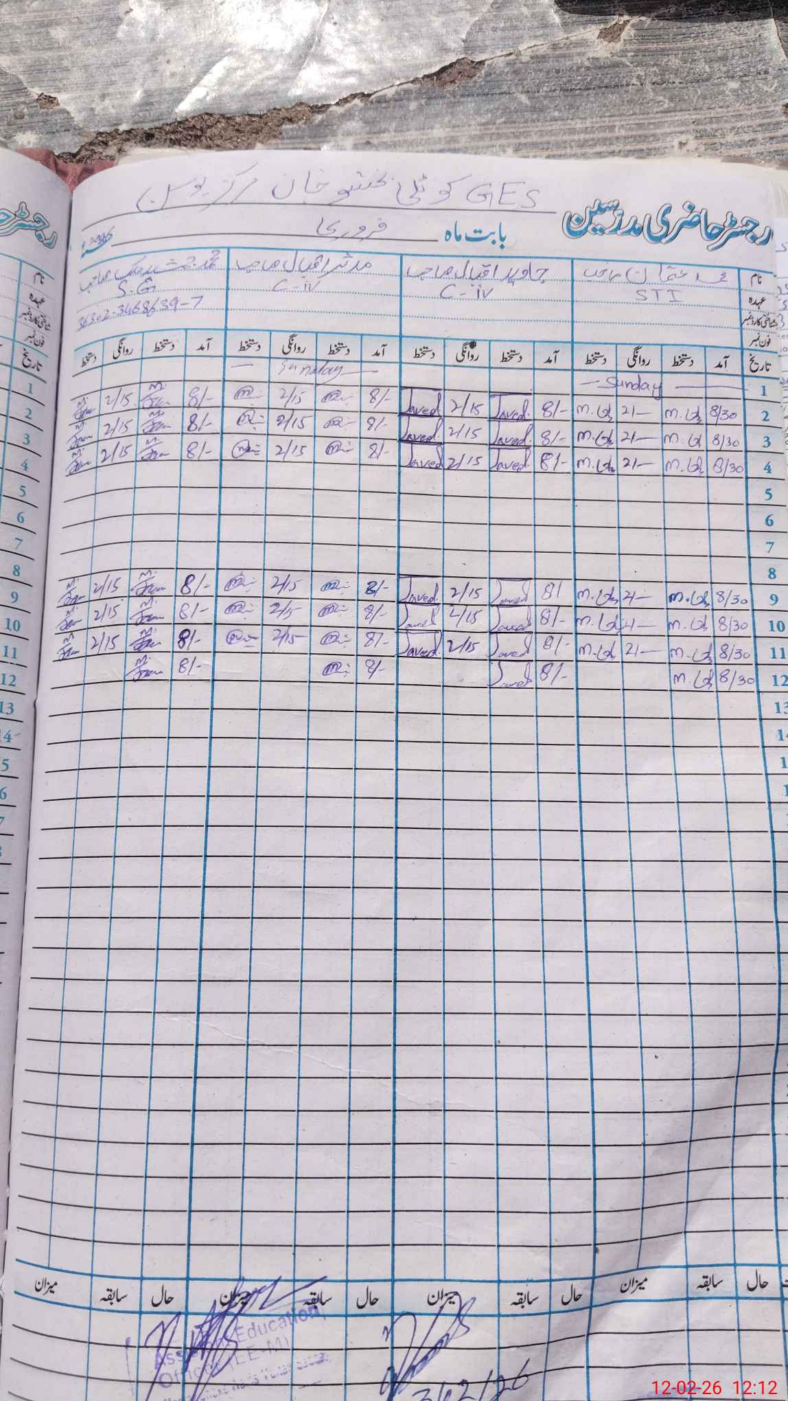 | CNIC | Full Name | Designation | R/C | Absence During Last Calender Month |