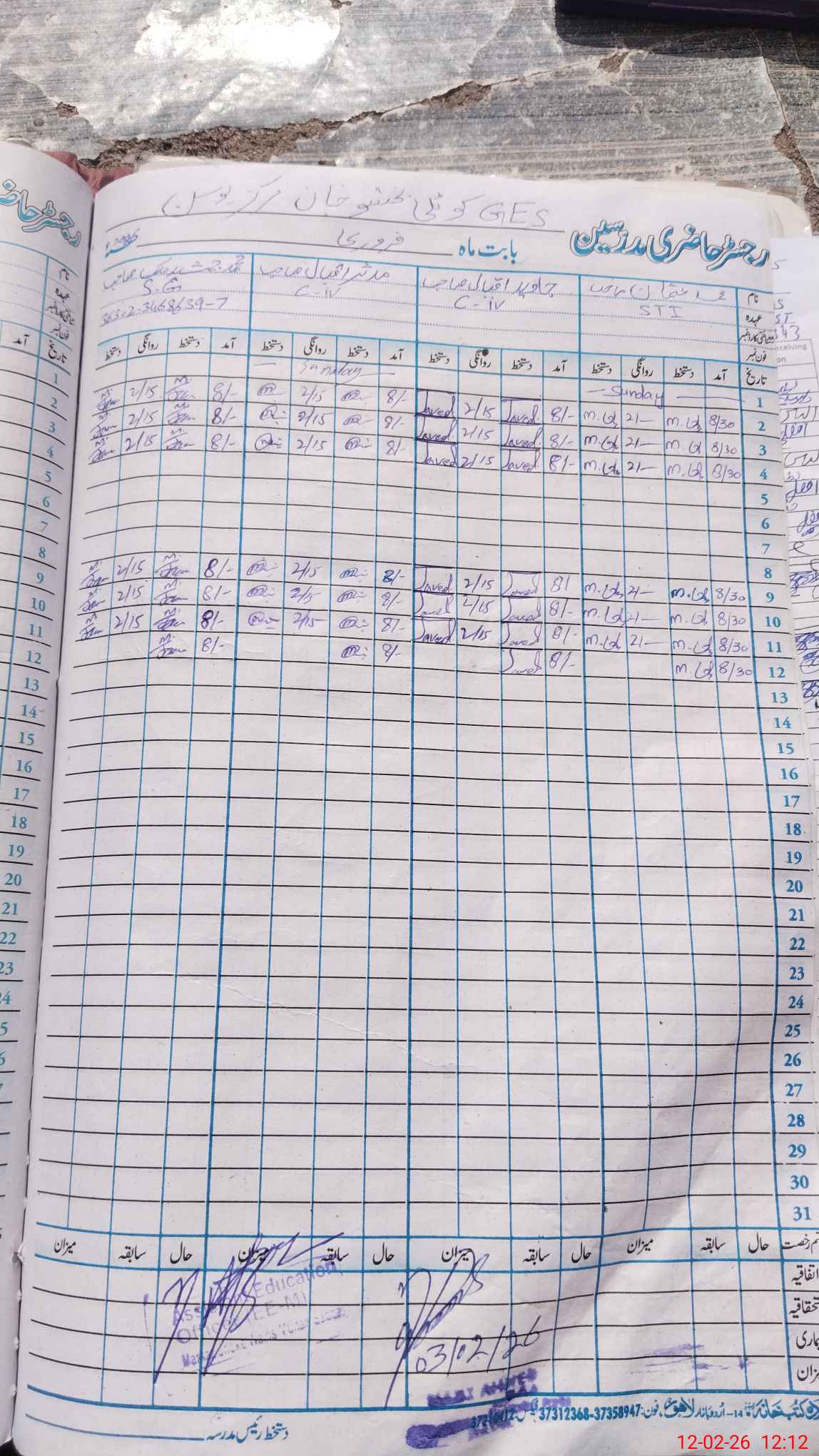 | Name: MIq**** Designation: (School Headmaster's/Headmistress's) Est G Phone/Cell Number: 03**** |