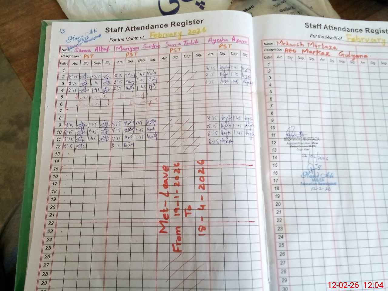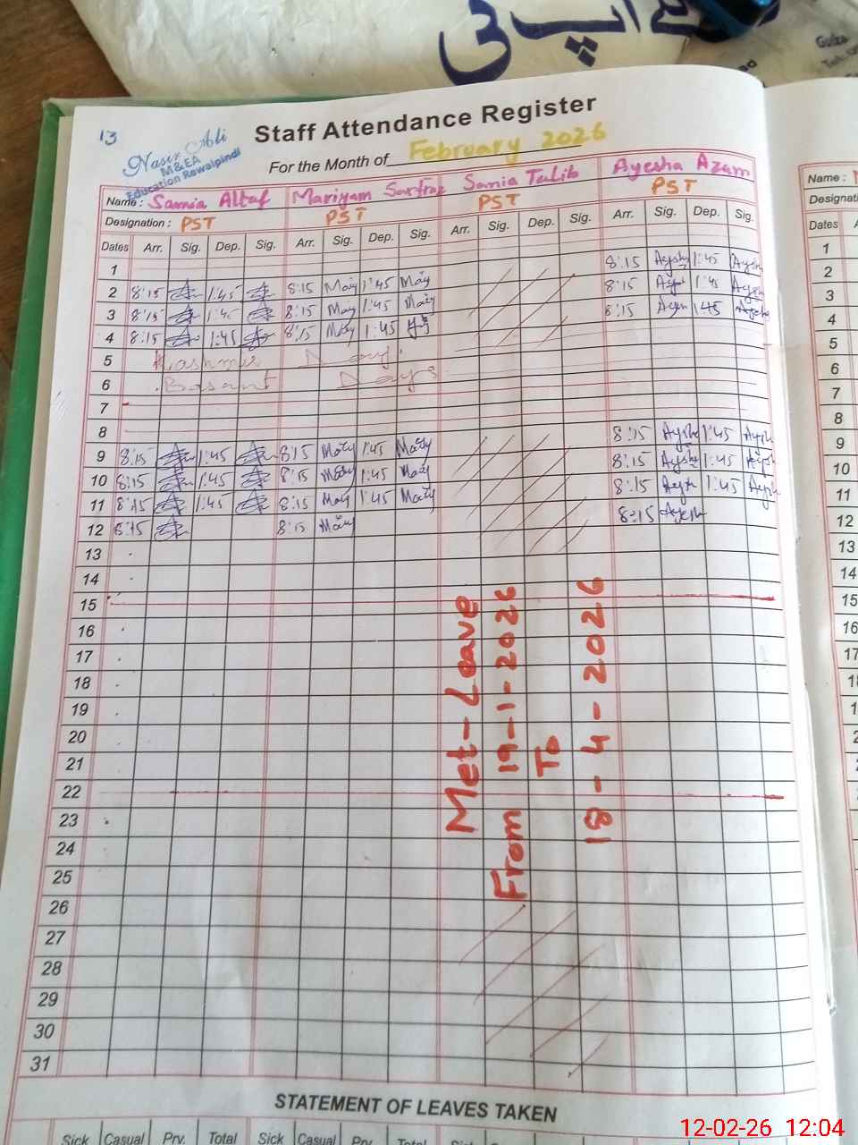 | 37**** | Sa**** Ta**** | PST Science/Maths | Regular | 0 | 0 | 0 | 0 | 0 | 0 | 0 | 0 | 0 | Maternity |
