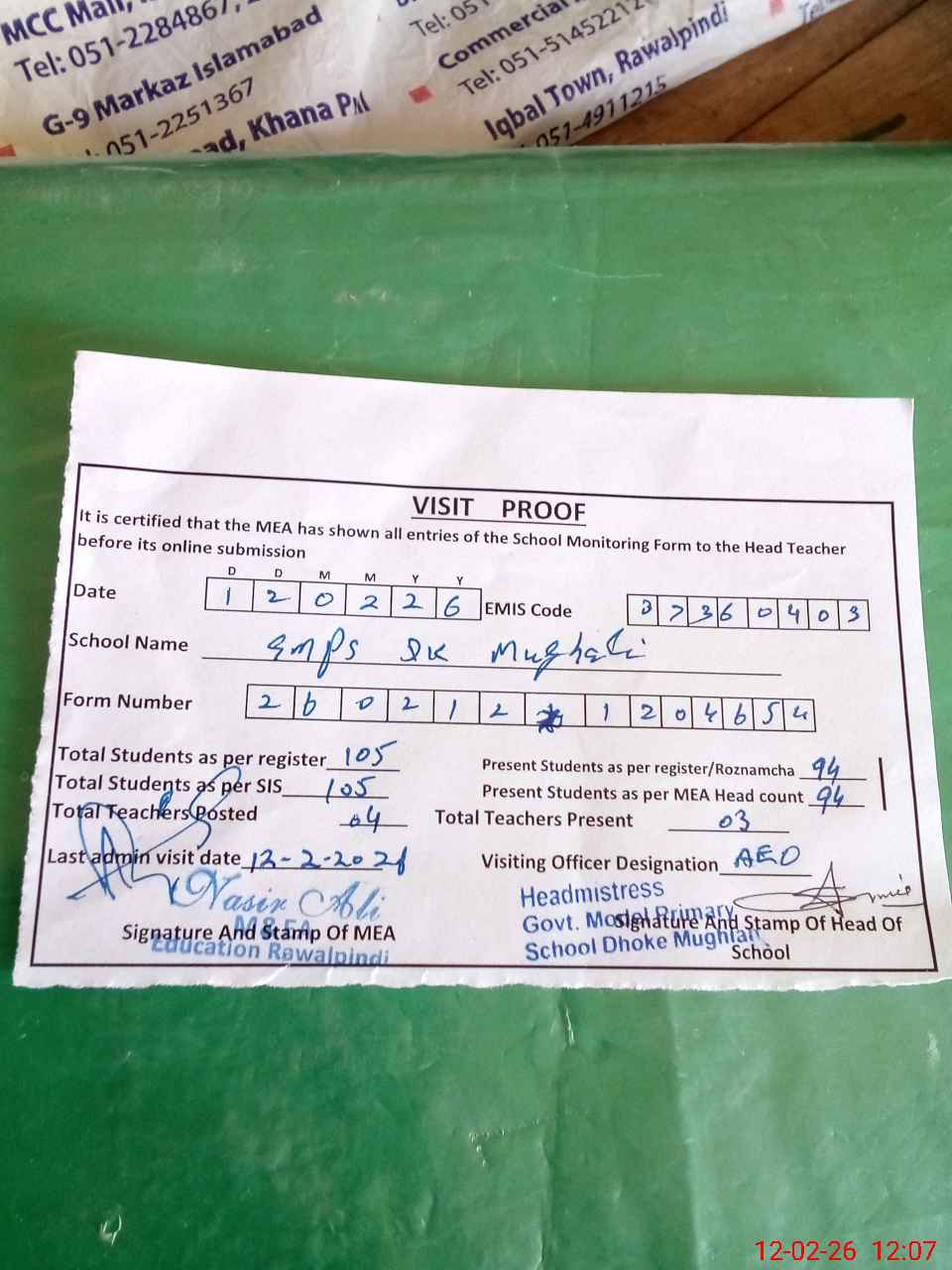 | EMIS Code: 37360403 | Name of School: GMPS DHOK MUGHLAN | |||