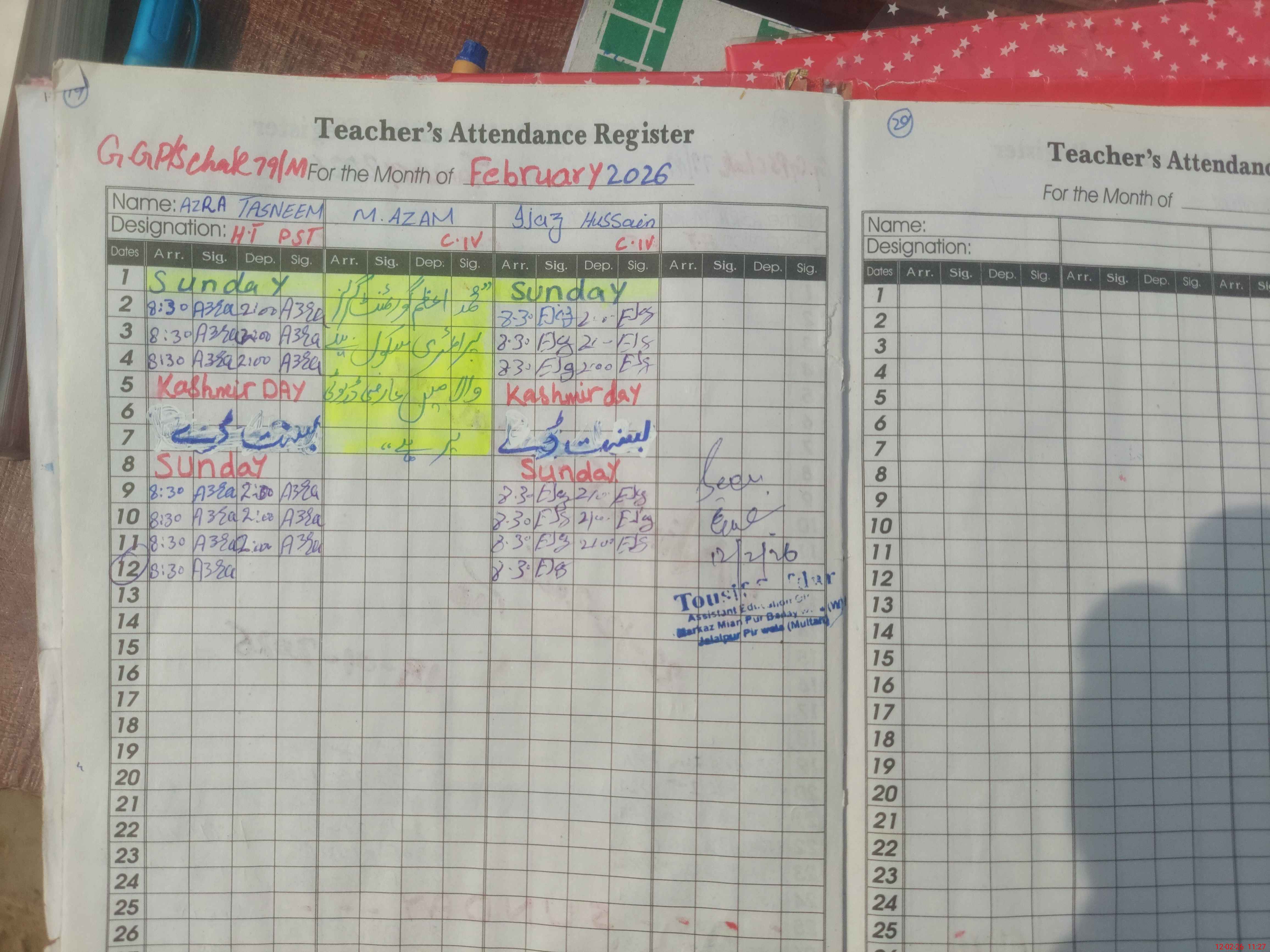 | Name: Az**** Ta**** Designation: (School Headmaster's/Headmistress's) PST/PTC/JV Phone/Cell Number: 03**** |