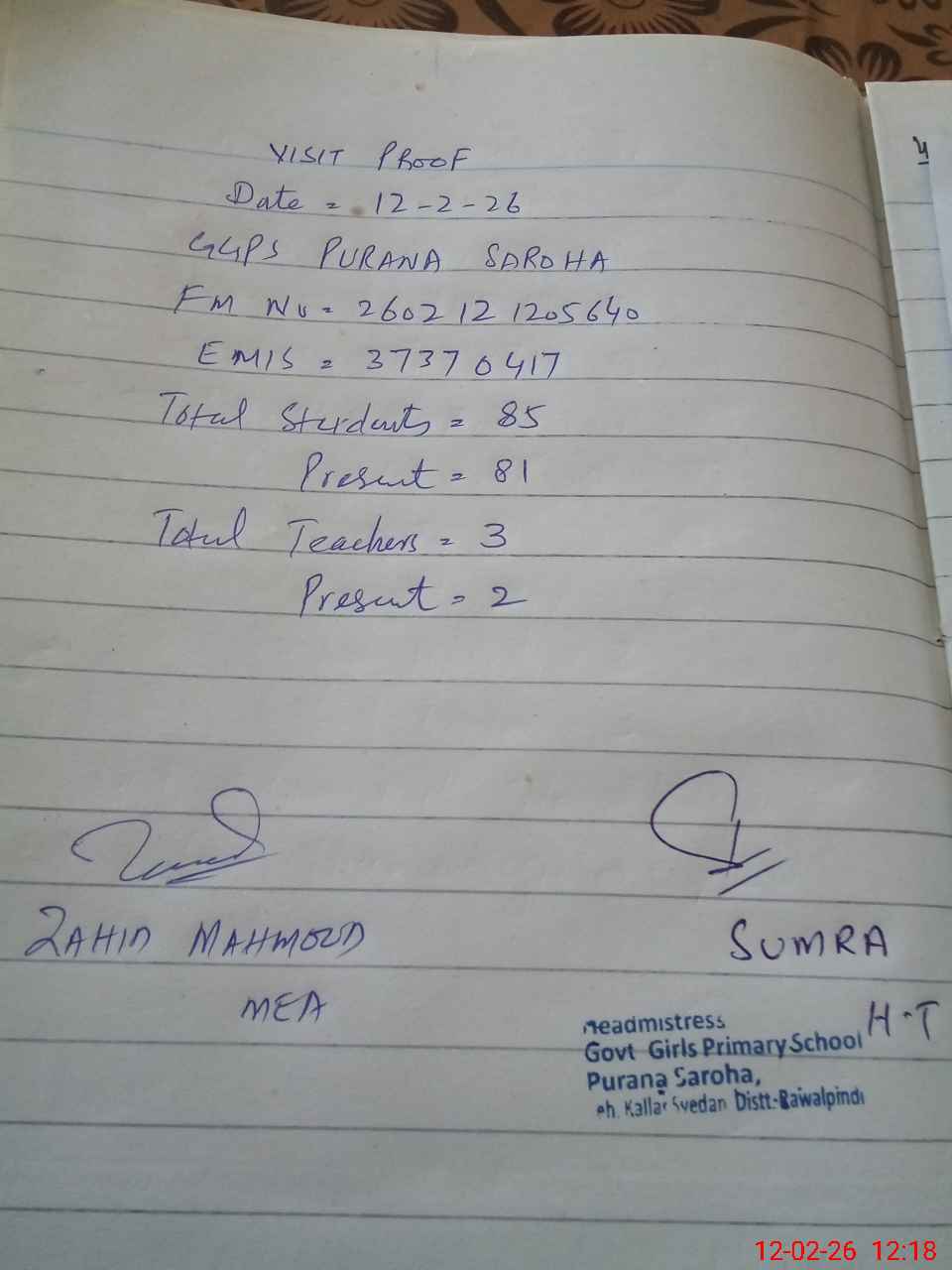 | EMIS Code: 37370417 | Name of School: GGPS PURANA SAROHA | |||