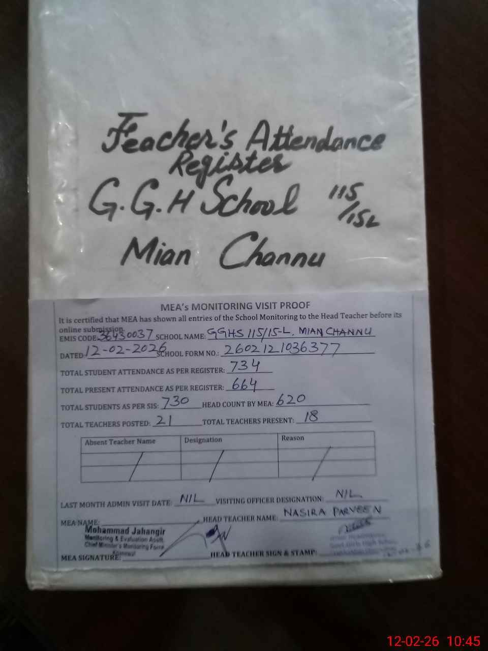 | EMIS Code: 36430037 | Name of School: GGHS 115/15-L, MIAN CHANNU | |||