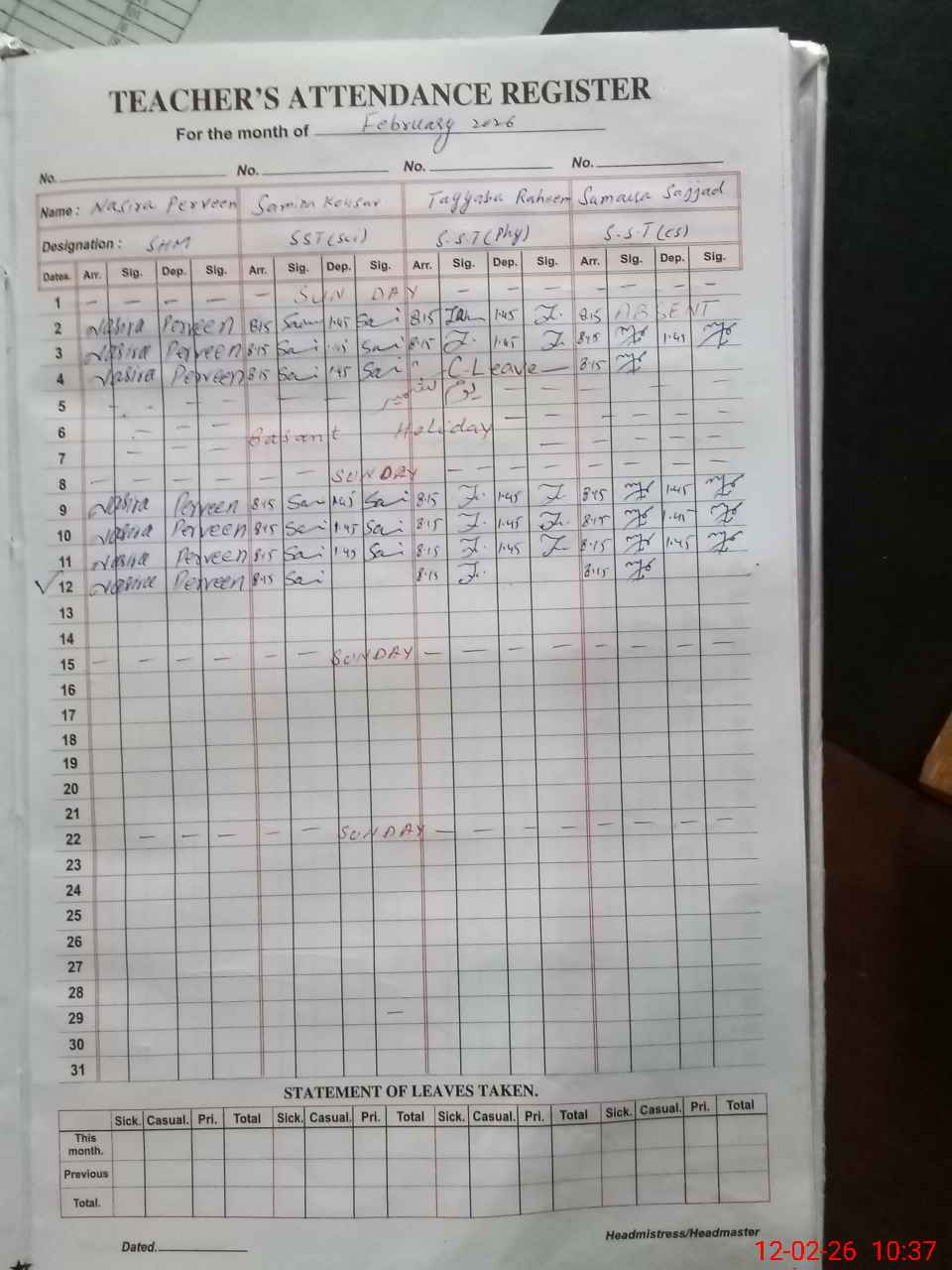 | Name: NA**** PE**** Designation: (School Headmaster's/Headmistress's) SR HEADMISTRESS Phone/Cell Number: 03**** |