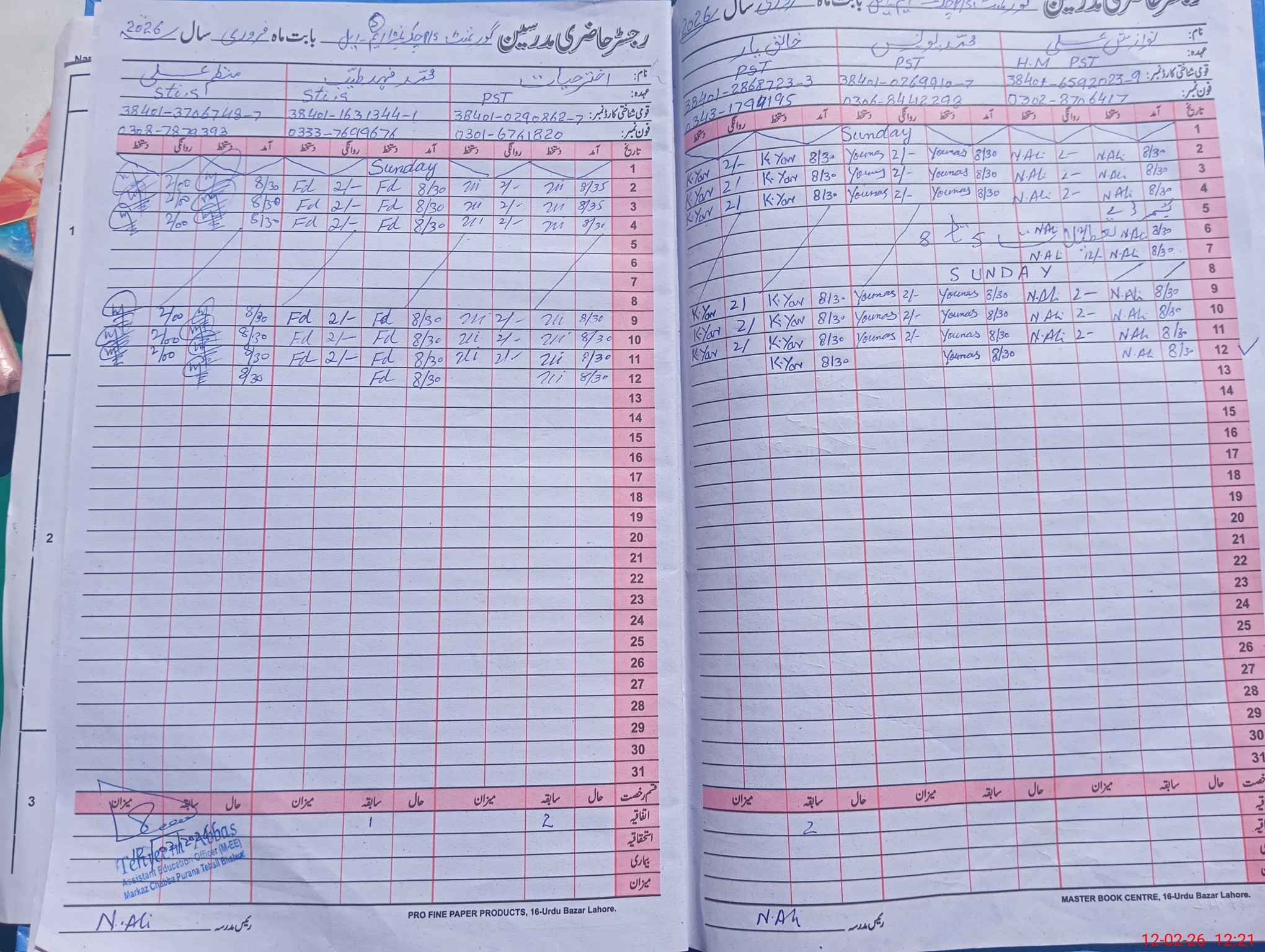 | Name: Na**** Al**** Designation: (School Headmaster's/Headmistress's) PST Phone/Cell Number: 03**** |