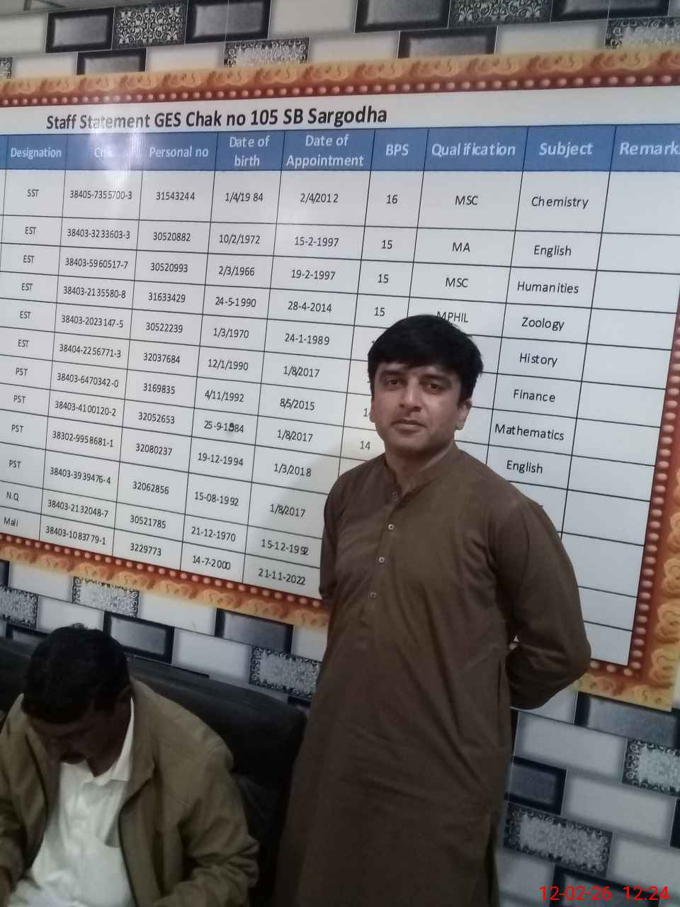 | EMIS Code: 38420102 | Name of School: GES CHAK NO.105 SB | |||