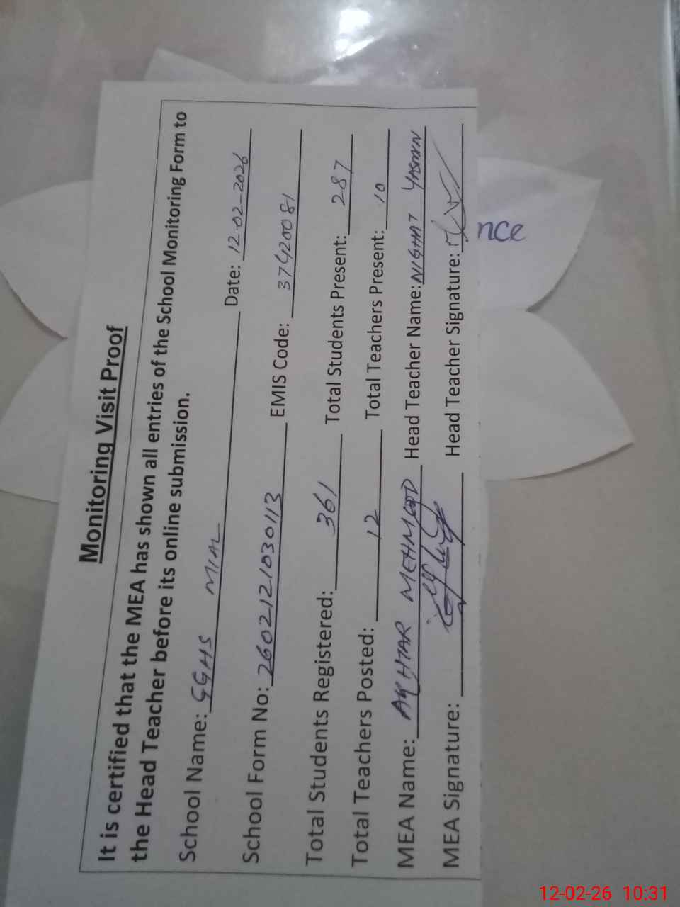 | EMIS Code: 37420081 | Name of School: GGHS MIAL | |||