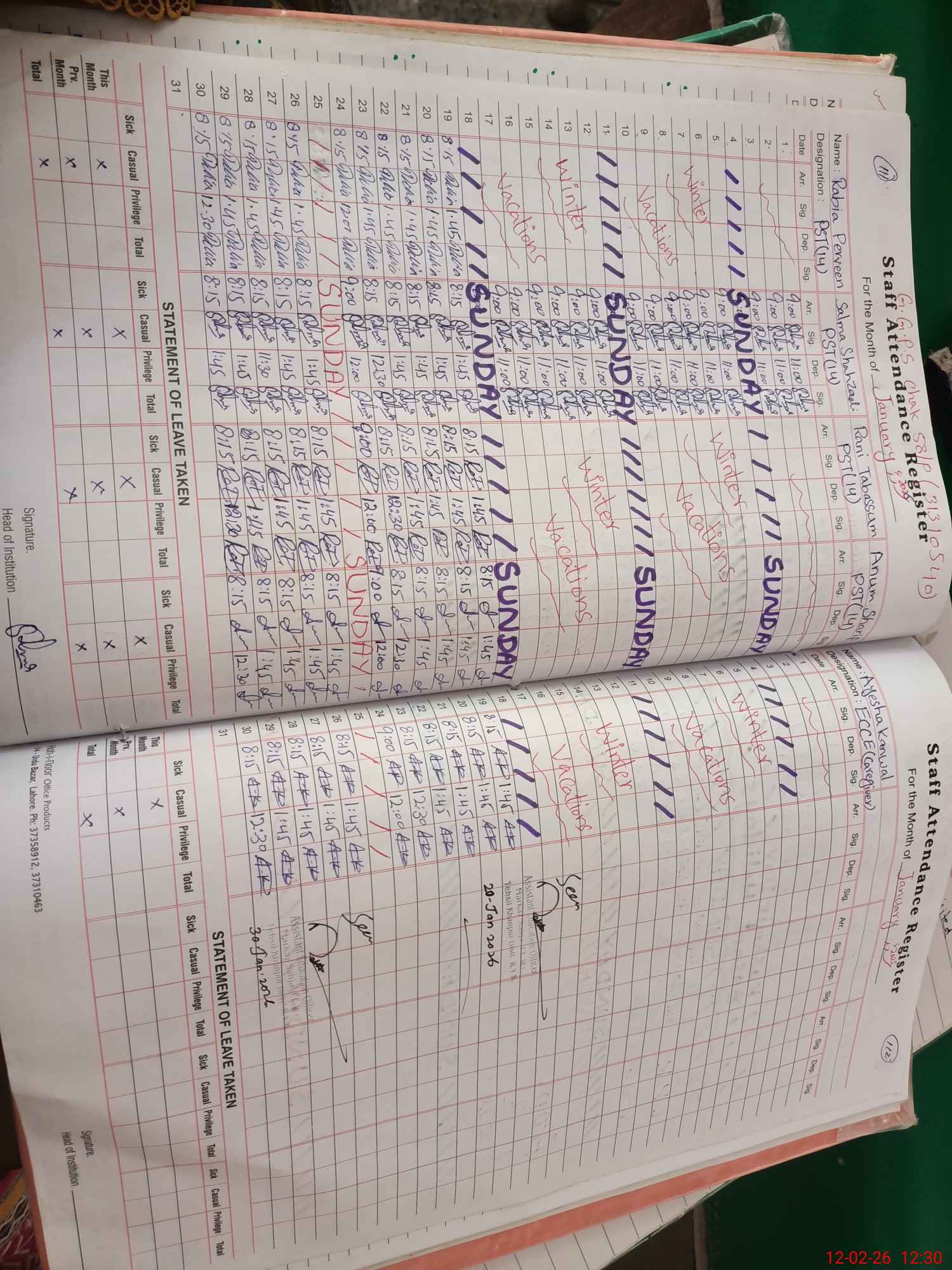 | Name: RA**** PA**** Designation: (School Headmaster's/Headmistress's) PST Phone/Cell Number: 03**** |