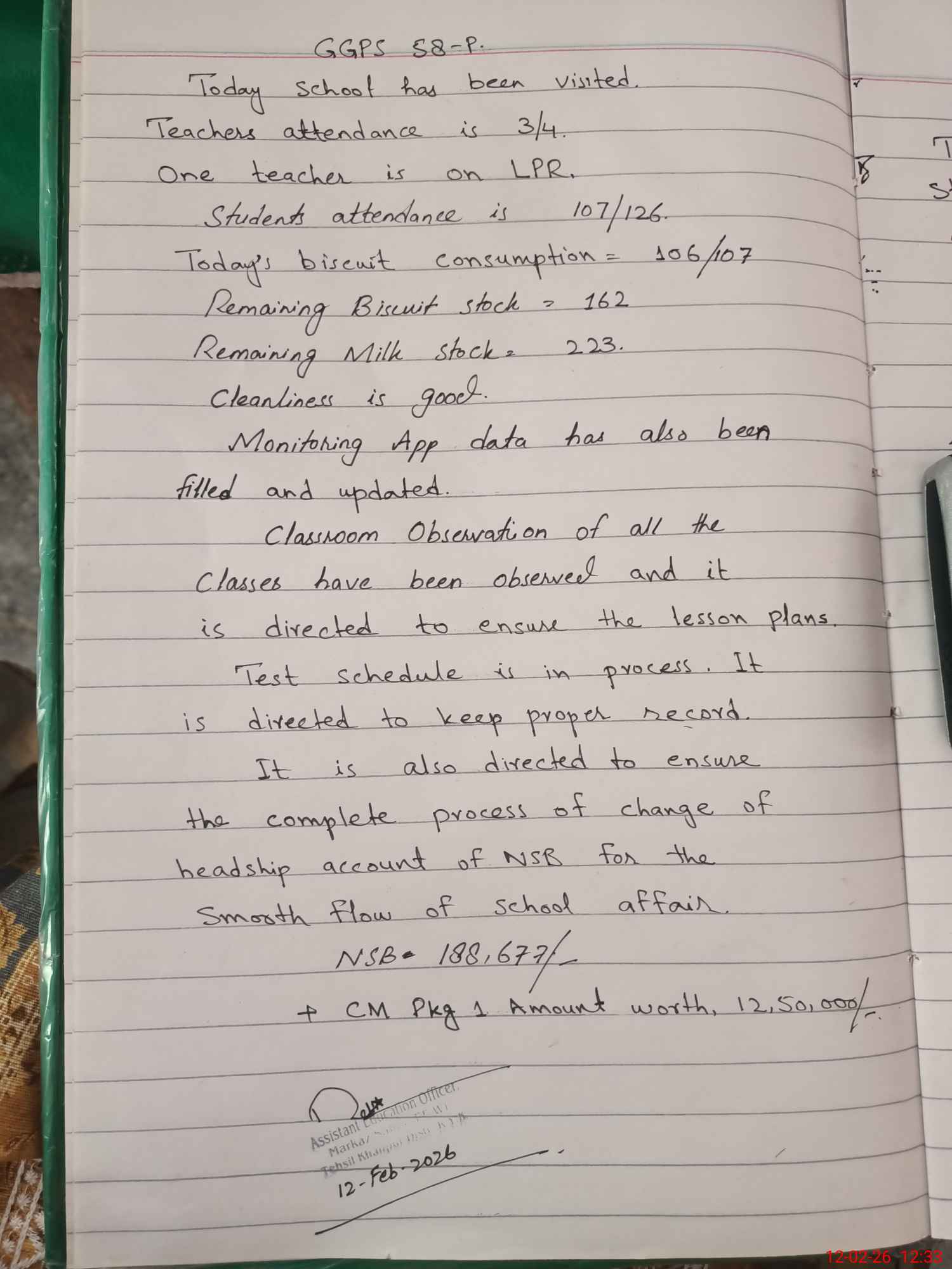 | Attendance Register | Head Teacher | MEA with School | Visit Proof |