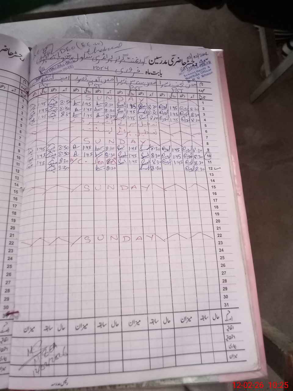 | CNIC | Full Name | Designation | R/C | Absence During Last Calender Month |