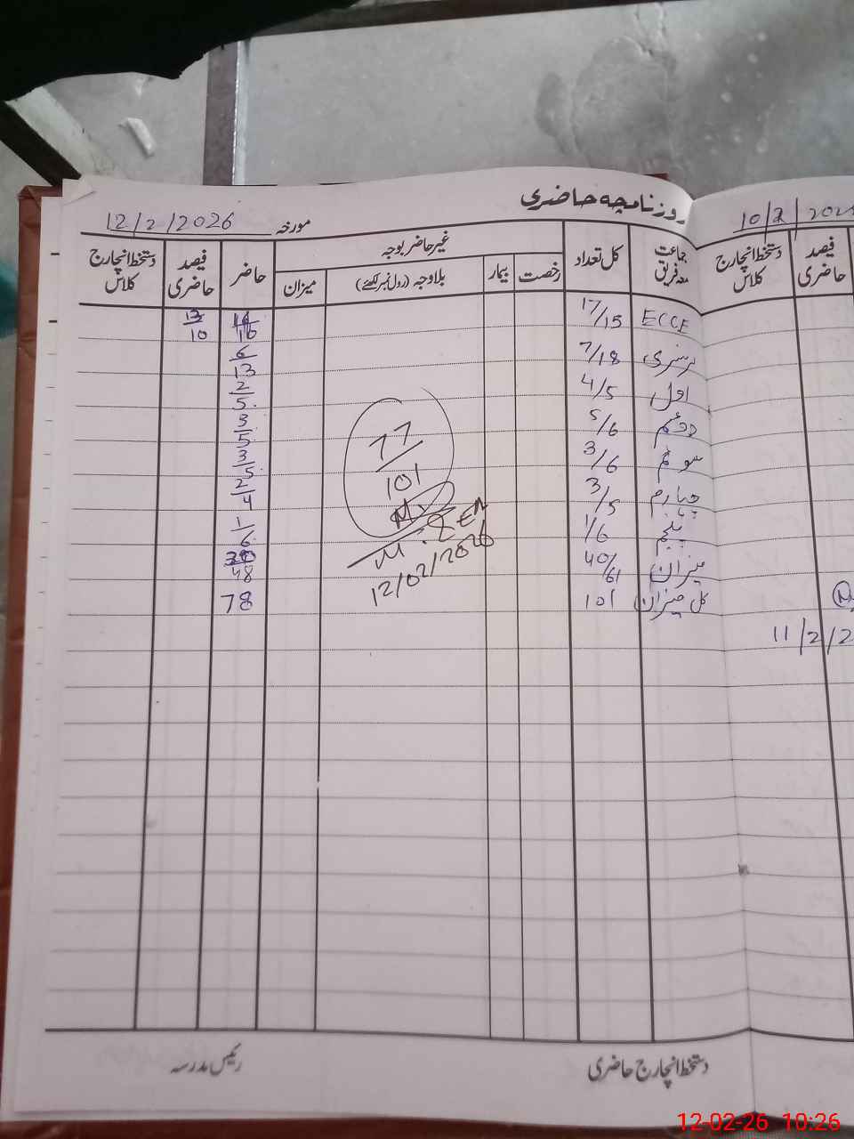| Total Students Present | 0 | 23 | 7 | 7 | 8 | 6 | 7 | 77 | ||||||||