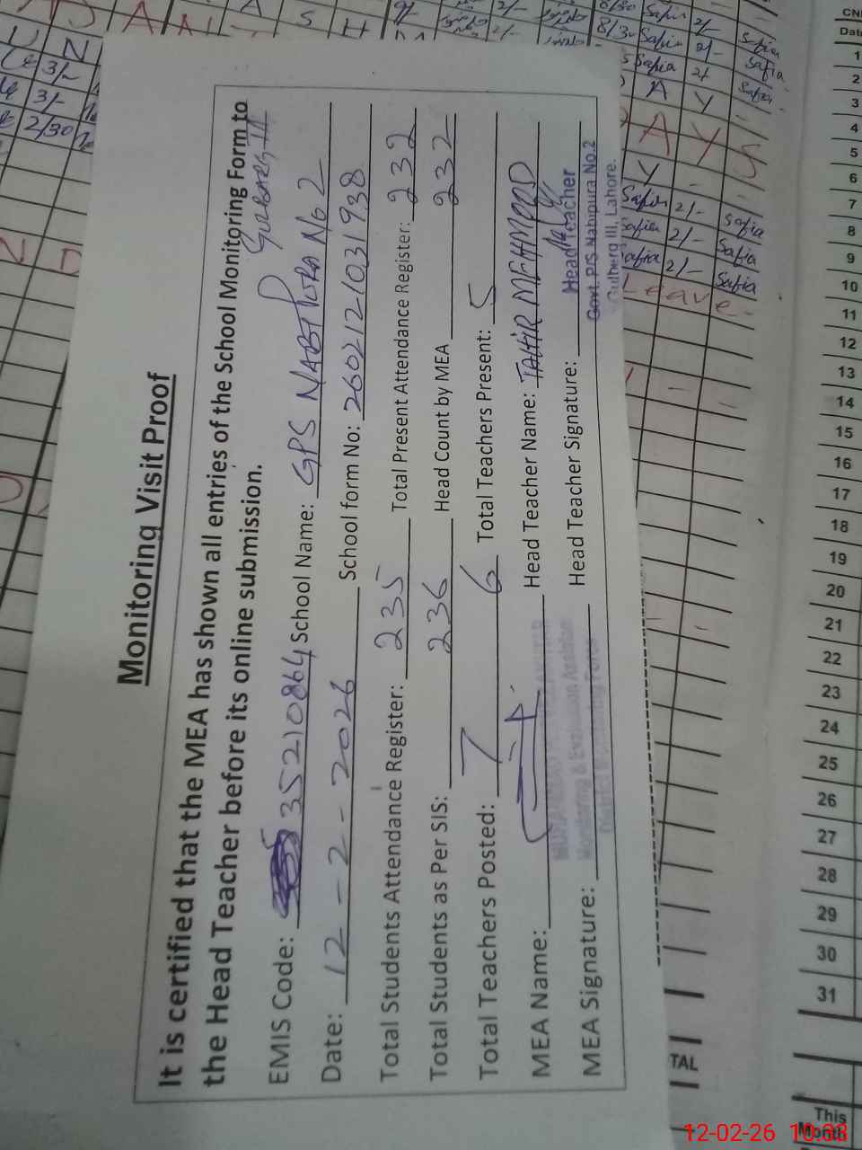 | EMIS Code: 35210864 | Name of School: GPS NABI PURA NO. 2 GULBERG III (EX-MCL) | |||