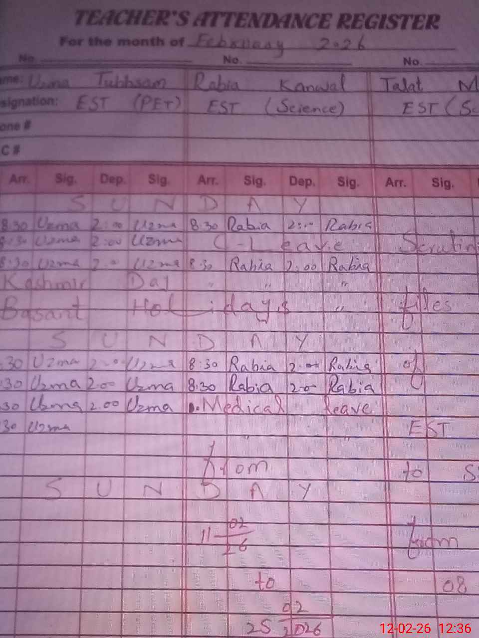 | CNIC | Full Name | Designation | R/C | Absence During Last Calender Month |