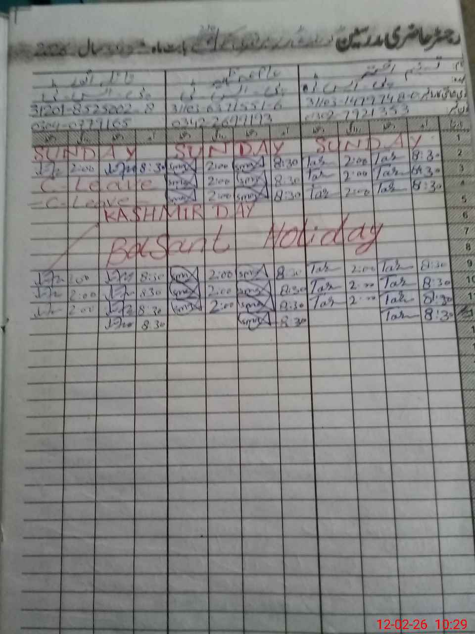 | CNIC | Full Name | Designation | R/C | Absence During Last Calender Month |