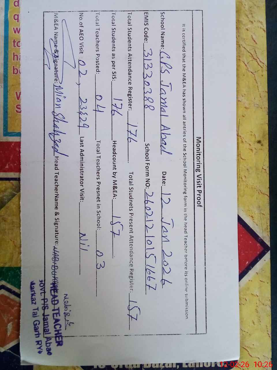 | EMIS Code: 31330388 | Name of School: GPS JAMAL ABAD | |||