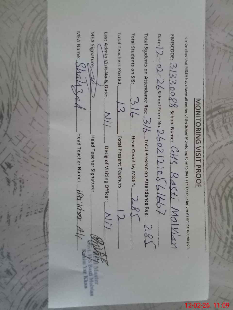 | EMIS Code: 31330088 | Name of School: GHS BASTI MOLVIAN | |||