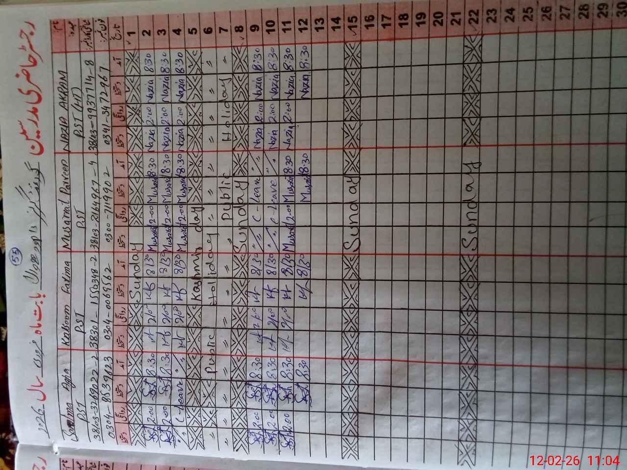 | CNIC | Full Name | Designation | R/C | Absence During Last Calender Month |