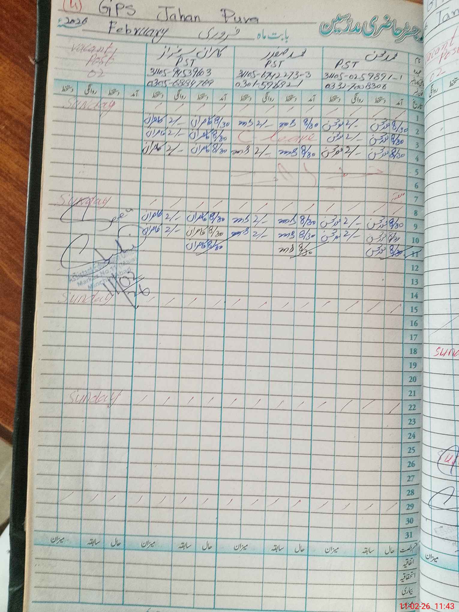 | CNIC | Full Name | Designation | R/C | Absence During Last Calender Month |