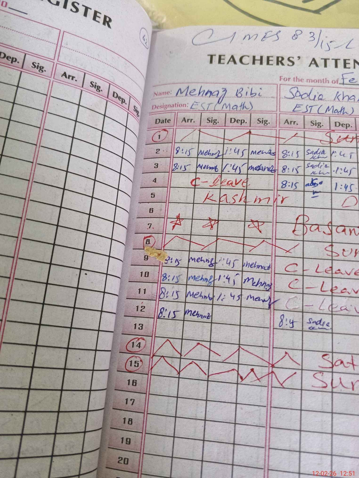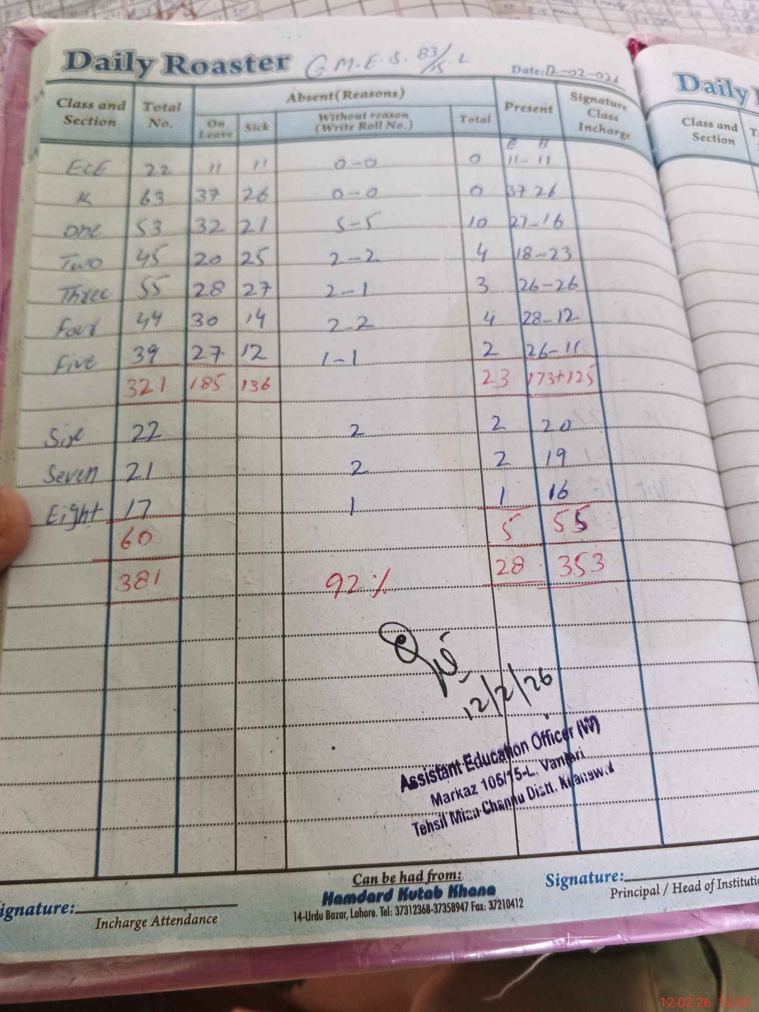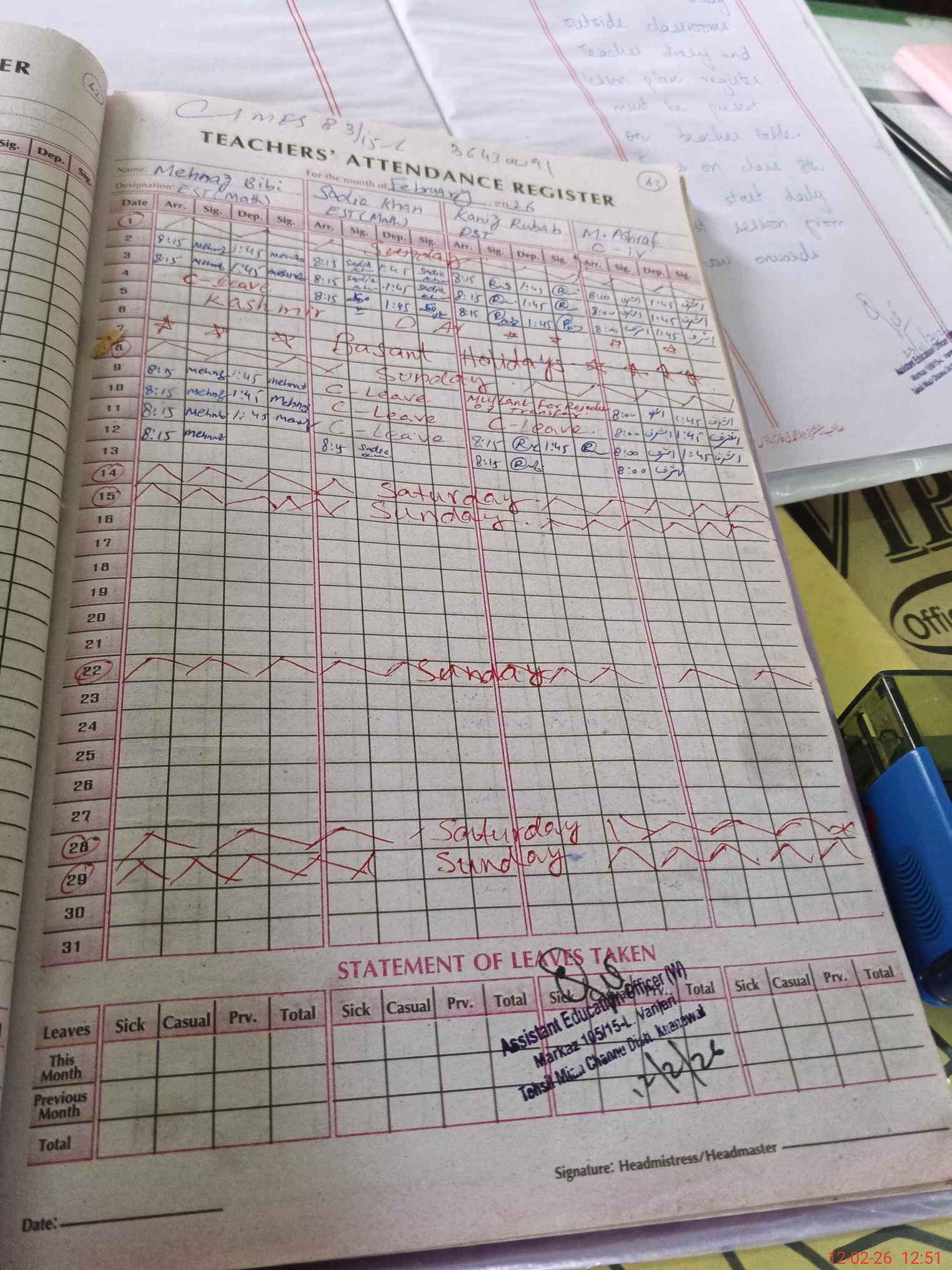 | Attendance Register | Head Teacher | MEA with School | Visit Proof |