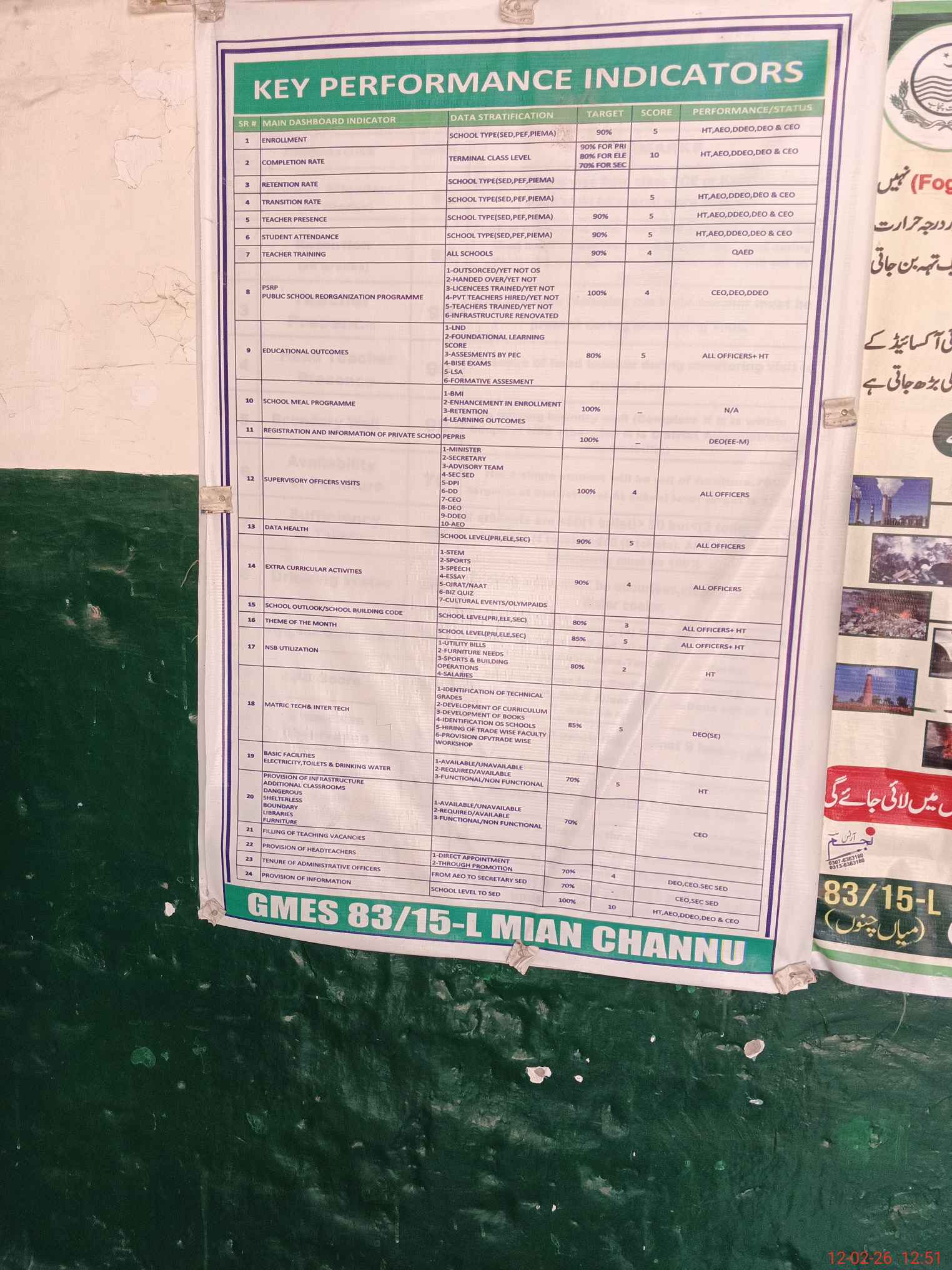 | EMIS Code: 36430091 | Name of School: GMES 83/15-L, MIAN CHANNU | |||