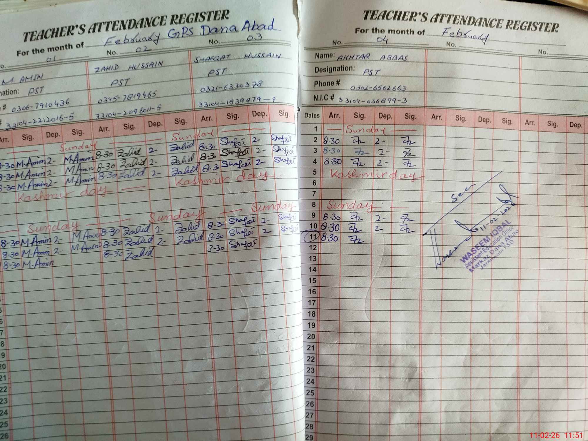 | Name: MU**** AM**** Designation: (School Headmaster's/Headmistress's) PST Phone/Cell Number: 03**** |