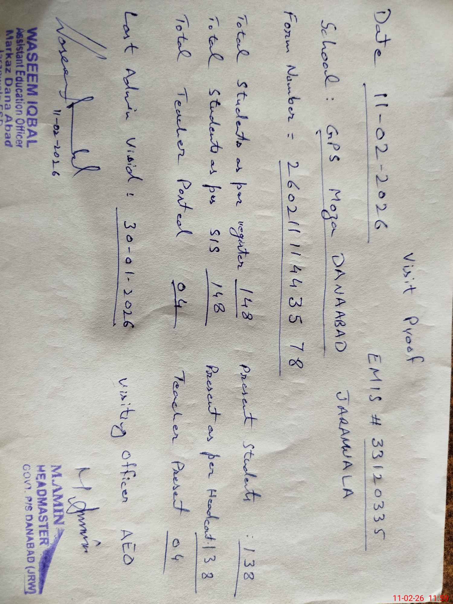 | EMIS Code: 33120335 | Name of School: GPS MOZA DANA ABAD | |||