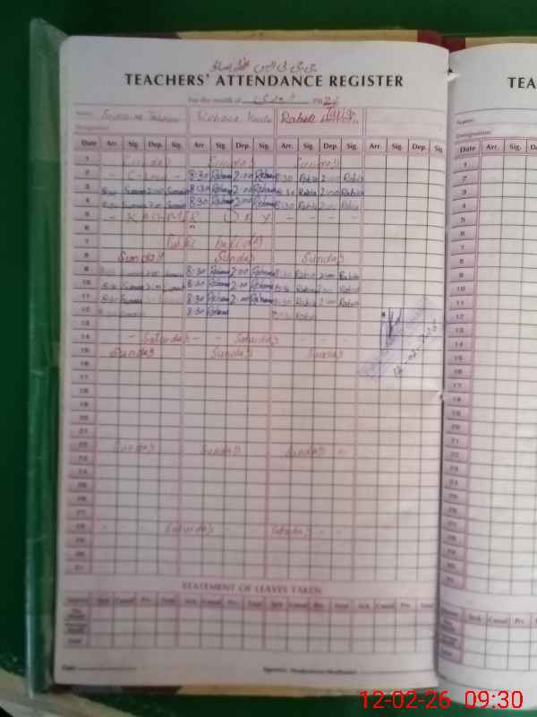 | Remarks (Use Separate Page if Required): Attendance of teaching staff on SIS Software is updated but students attendance on SIS Software is not updated Data as per provided by School Staff and found during physical visit | |||||