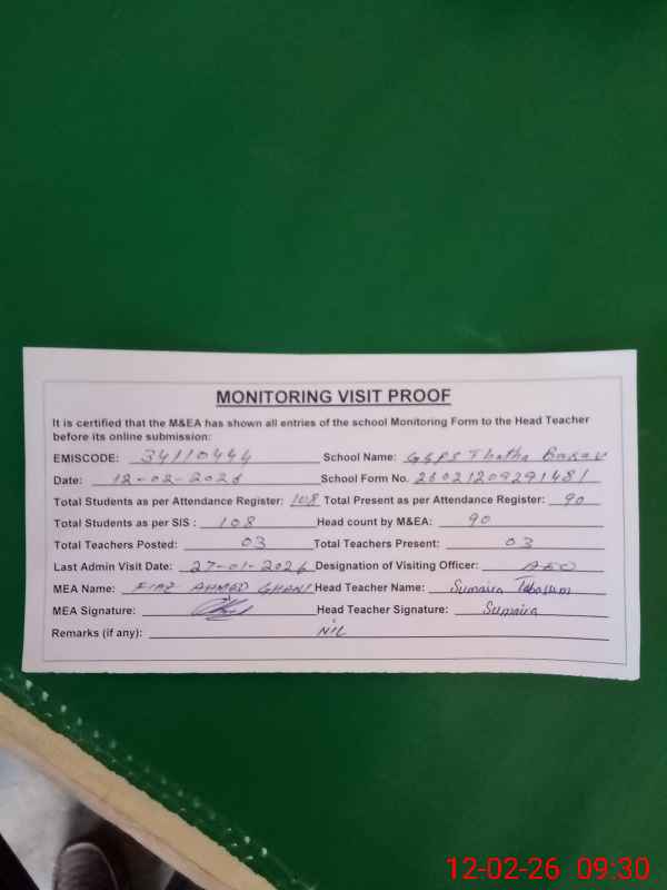 | EMIS Code: 34110444 | Name of School: GGPS THATTA BASAU | |||