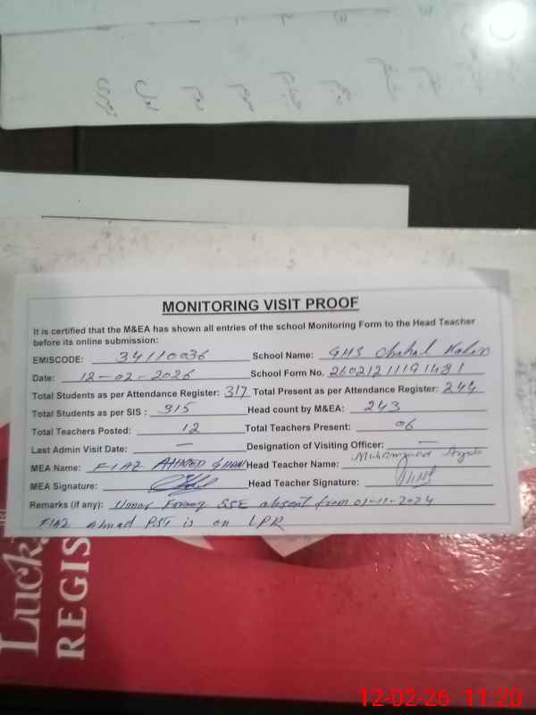| EMIS Code: 34110036 | Name of School: GHS CHAHAL KALAN | |||