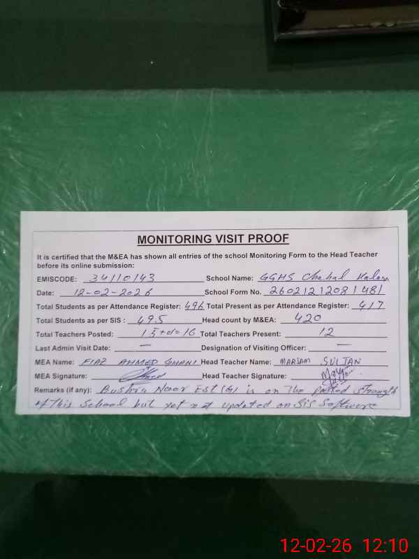 | EMIS Code: 34110143 | Name of School: GGHS CHAHAL KALAN | |||